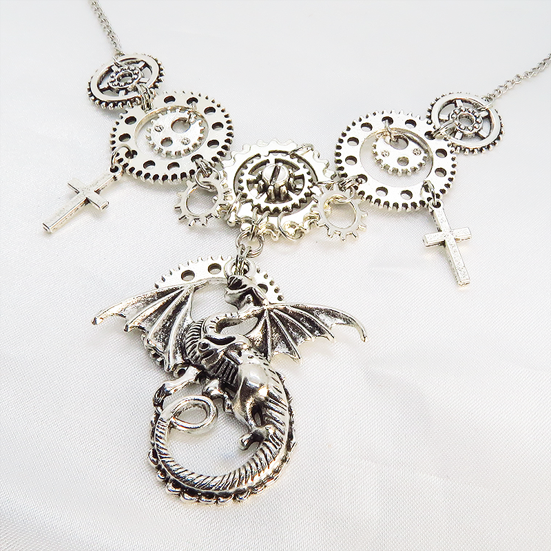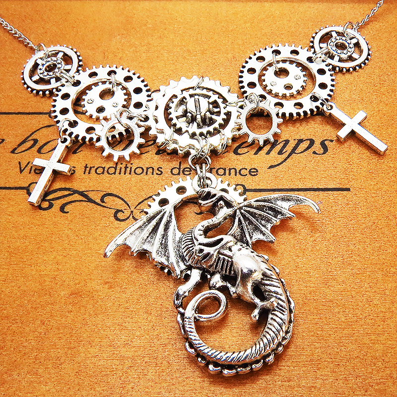 アンティークシルバーの重厚な輝きが、幻想的な世界観を演出するネックレスです