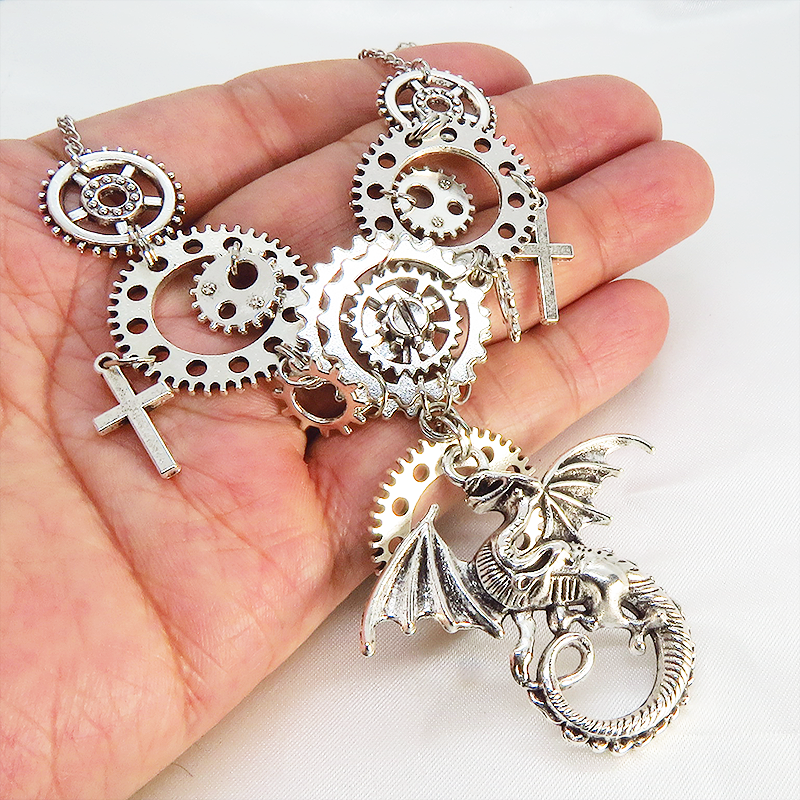 時空を超えた冒険へ。アンティークシルバーの多層スチームパンクネックレス