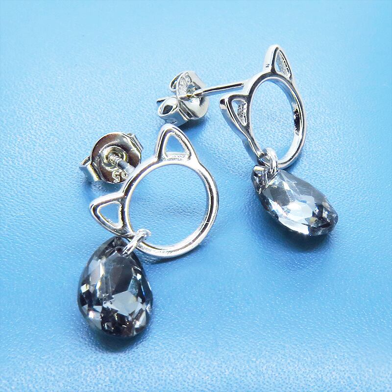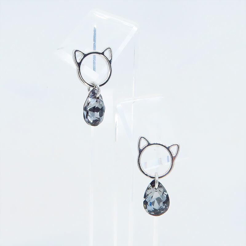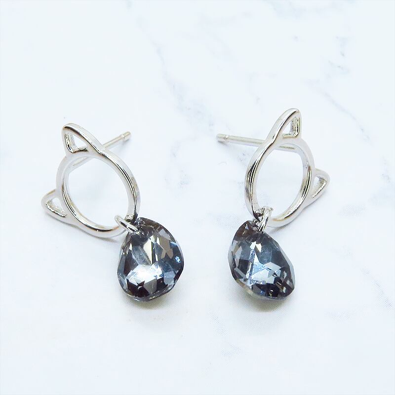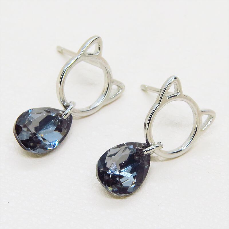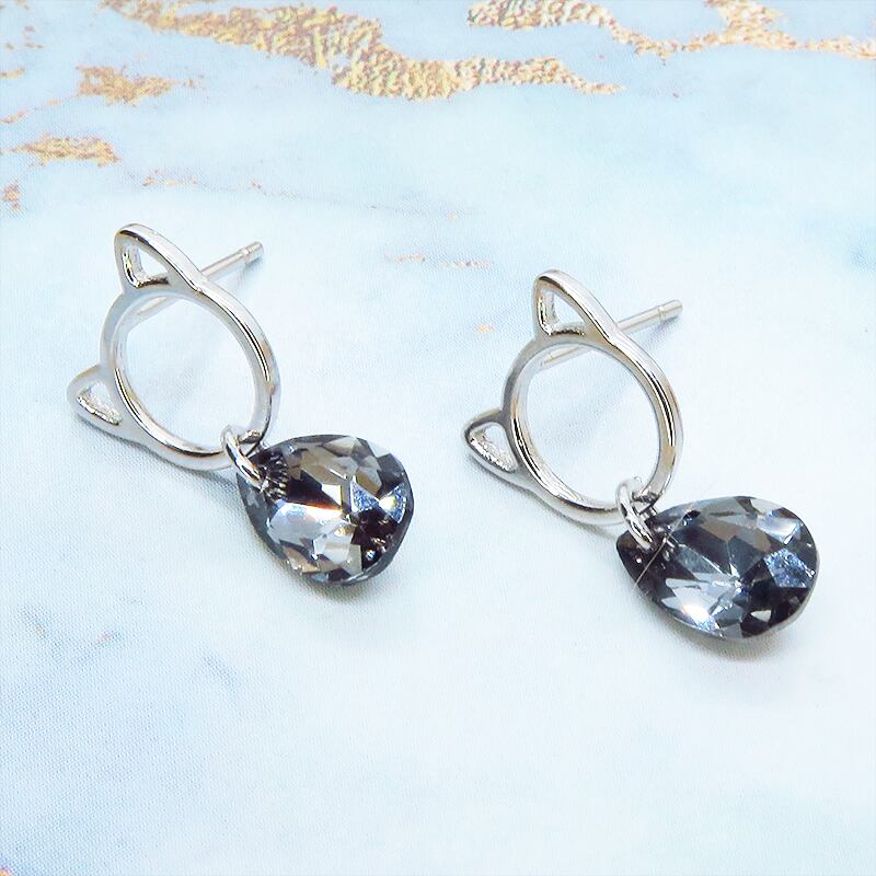 耳元で輝く、猫とスワロフスキーの小さな物語。シルバー925ピアス