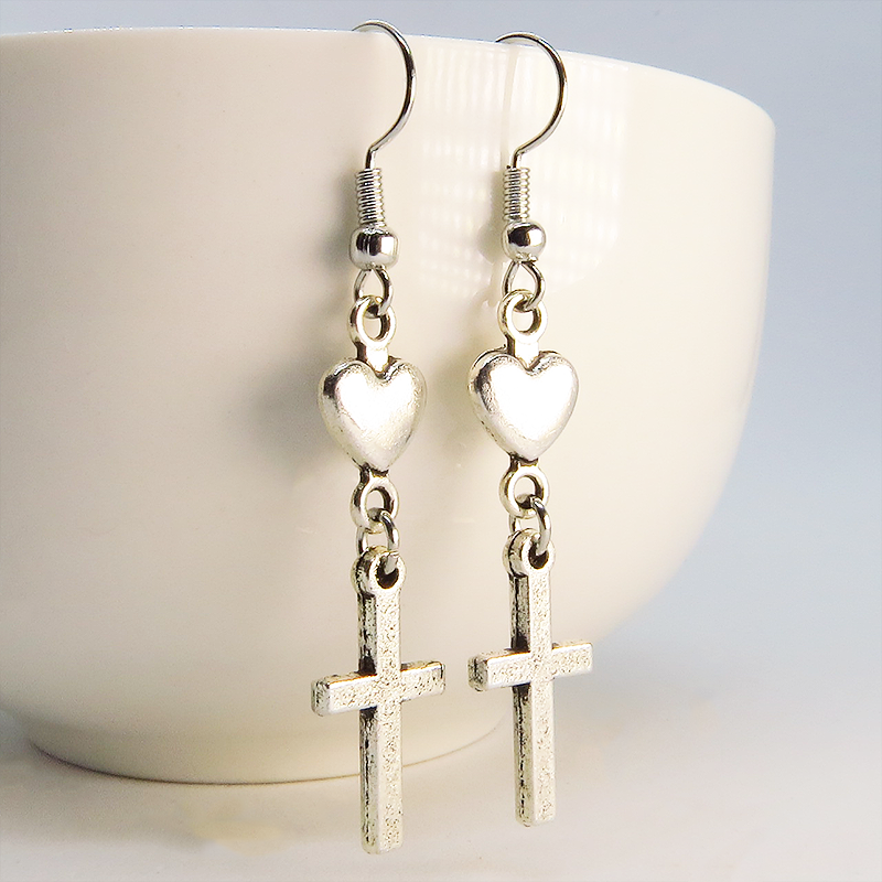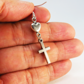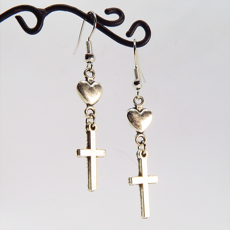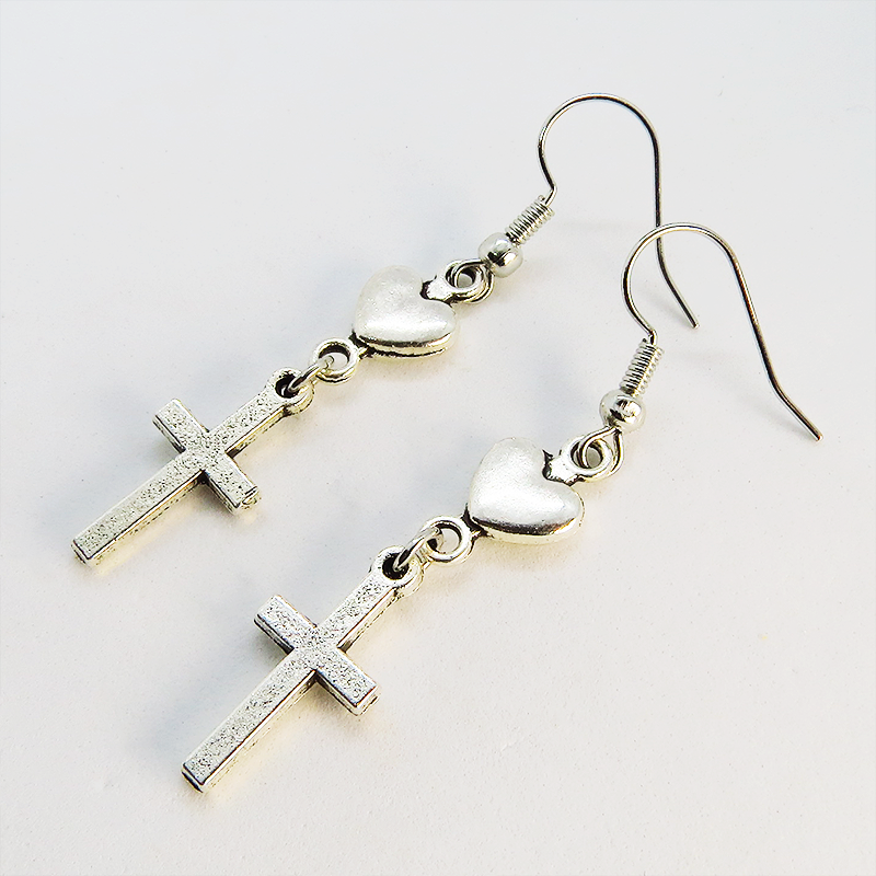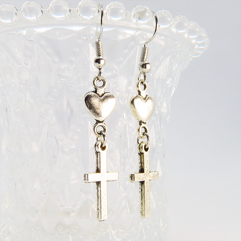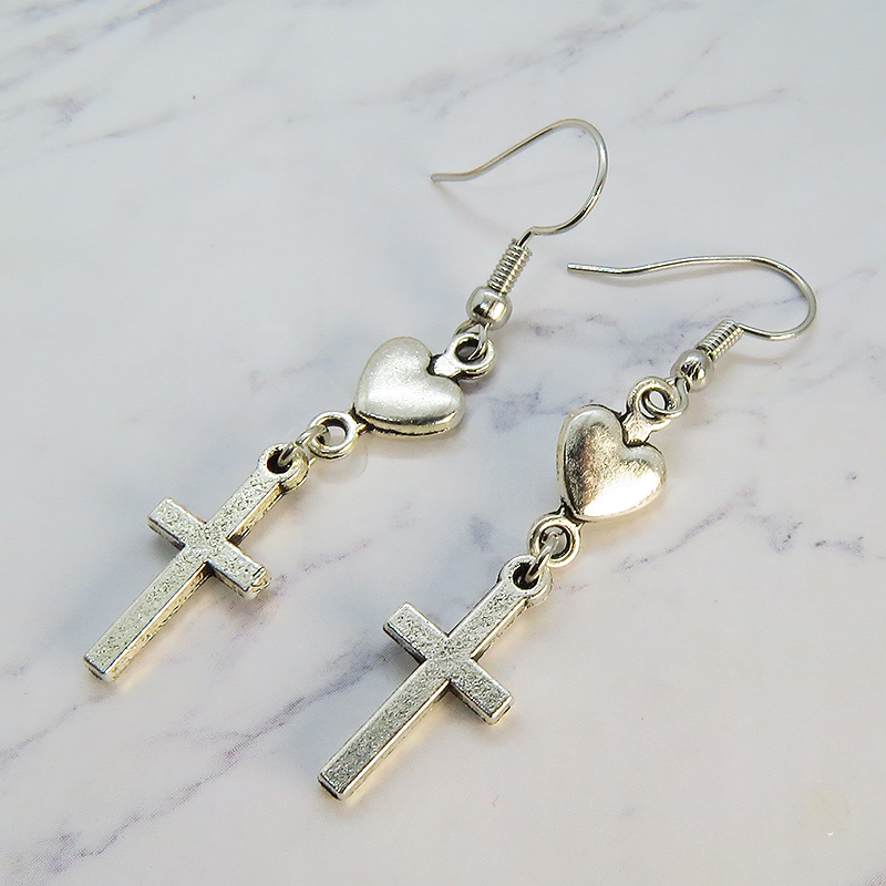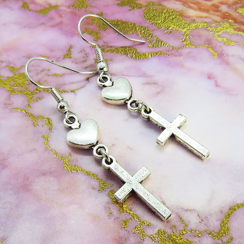 相反するイメージを持つロザリオとハートの組み合わせは、甘さとクールさの絶妙なバランス