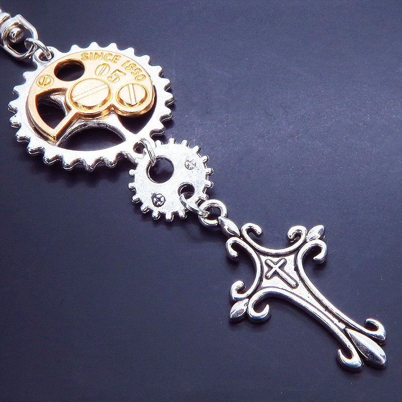 アンティークシルバーと歯車、ロザリオの組み合わせは、ゴシック調の雰囲気も持ち合わせています。