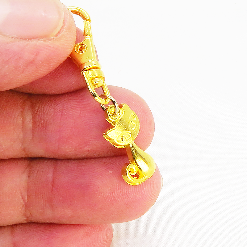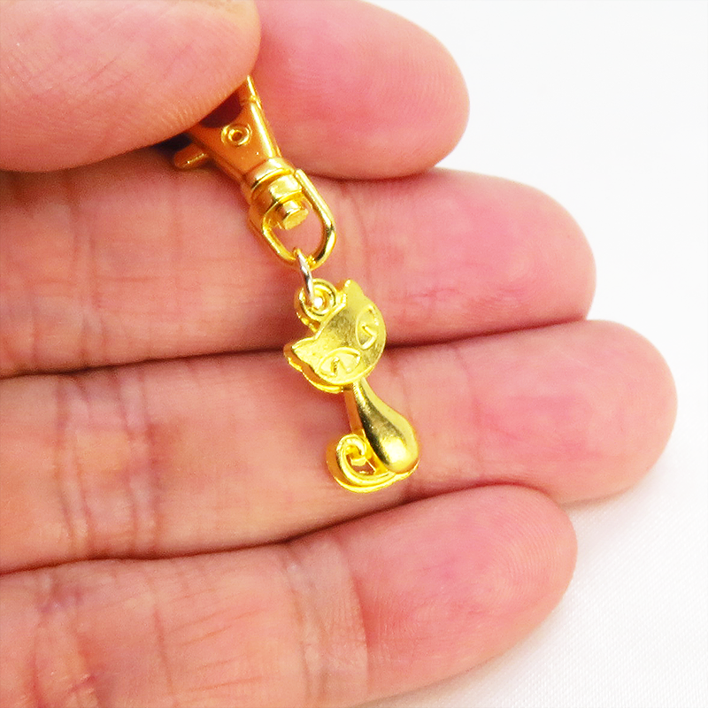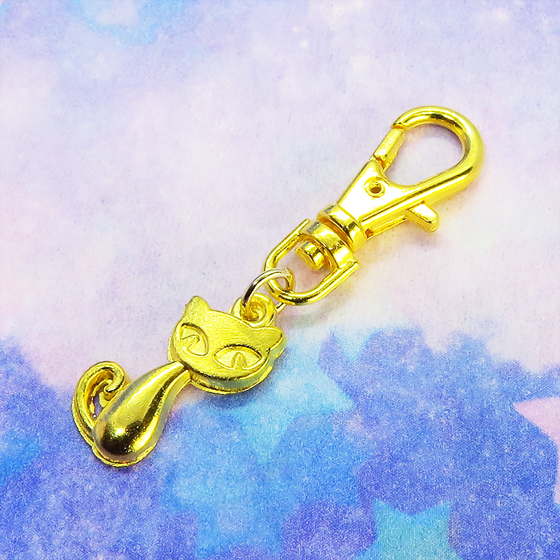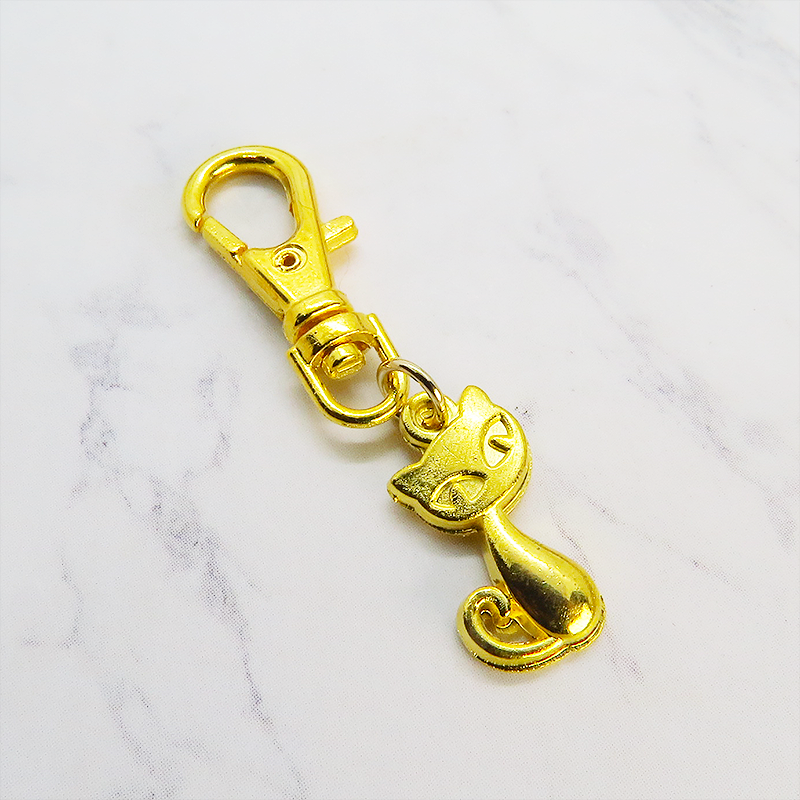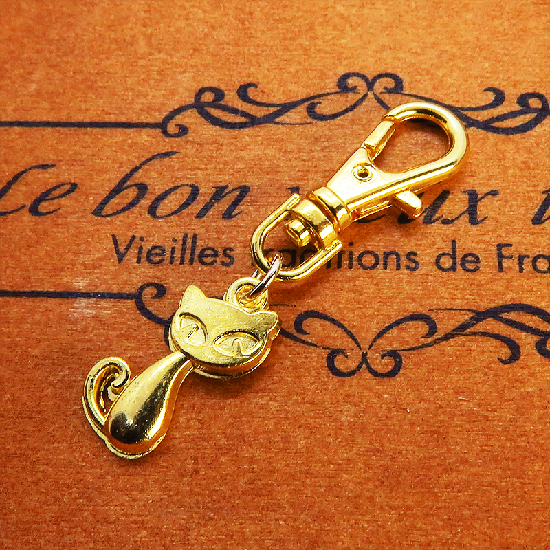 ちょこんと可愛い、ゴールドカラーの猫モチーフキーホルダー