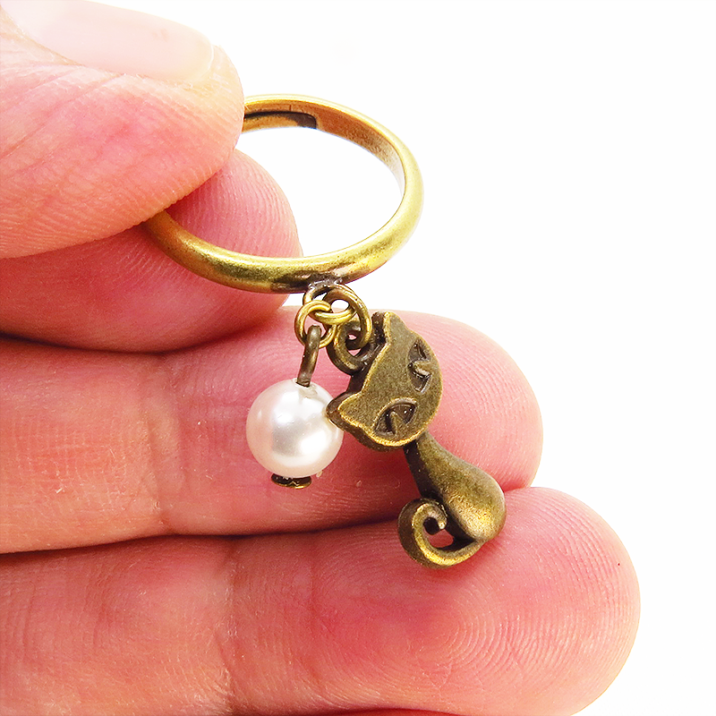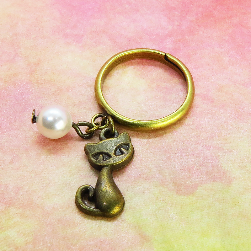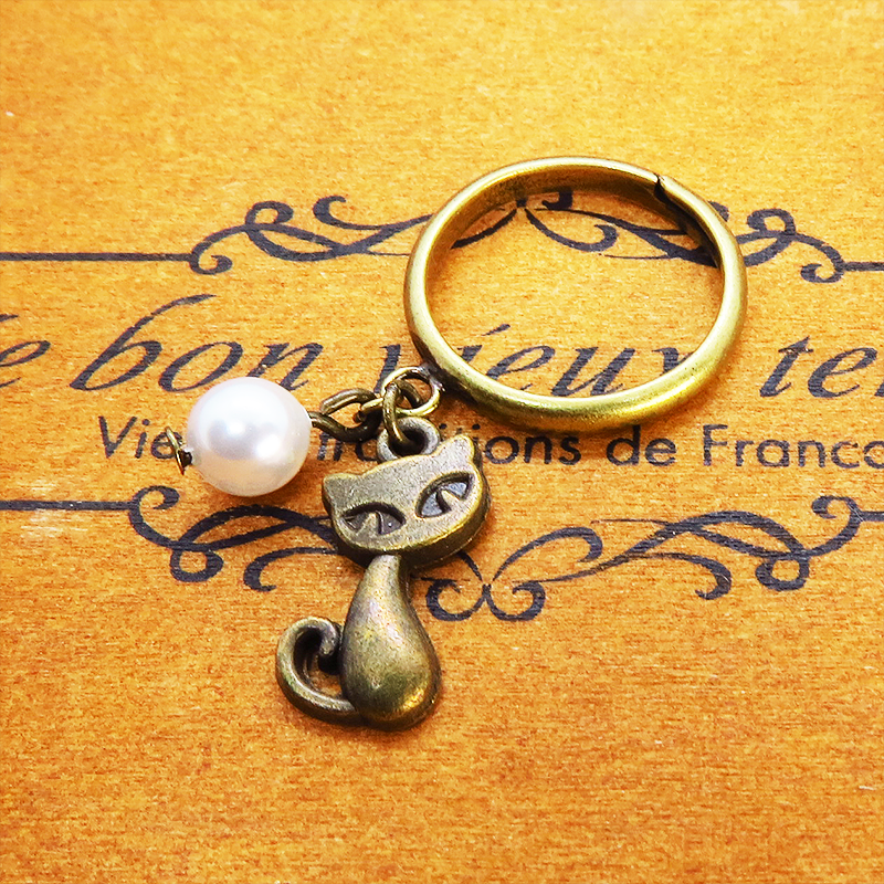 指先に、愛らしさと上品さを。アンティークゴールドの猫とパールのリング