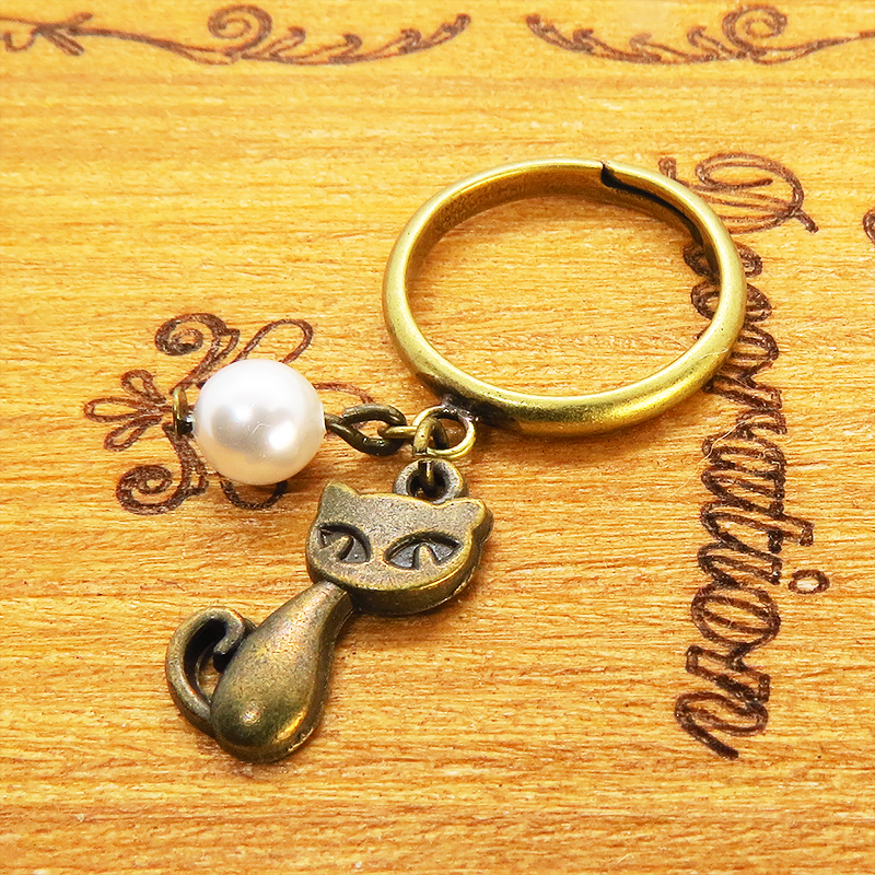 ちょこんと座った猫のチャームと美しいスワロフスキーパールが大人の女性に似合う可愛らしさと上品さを兼ね備えたデザイン