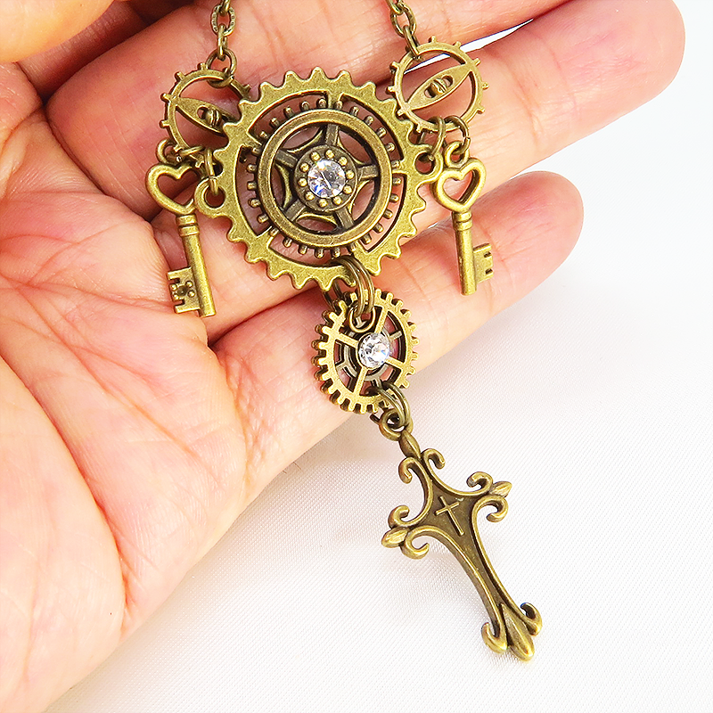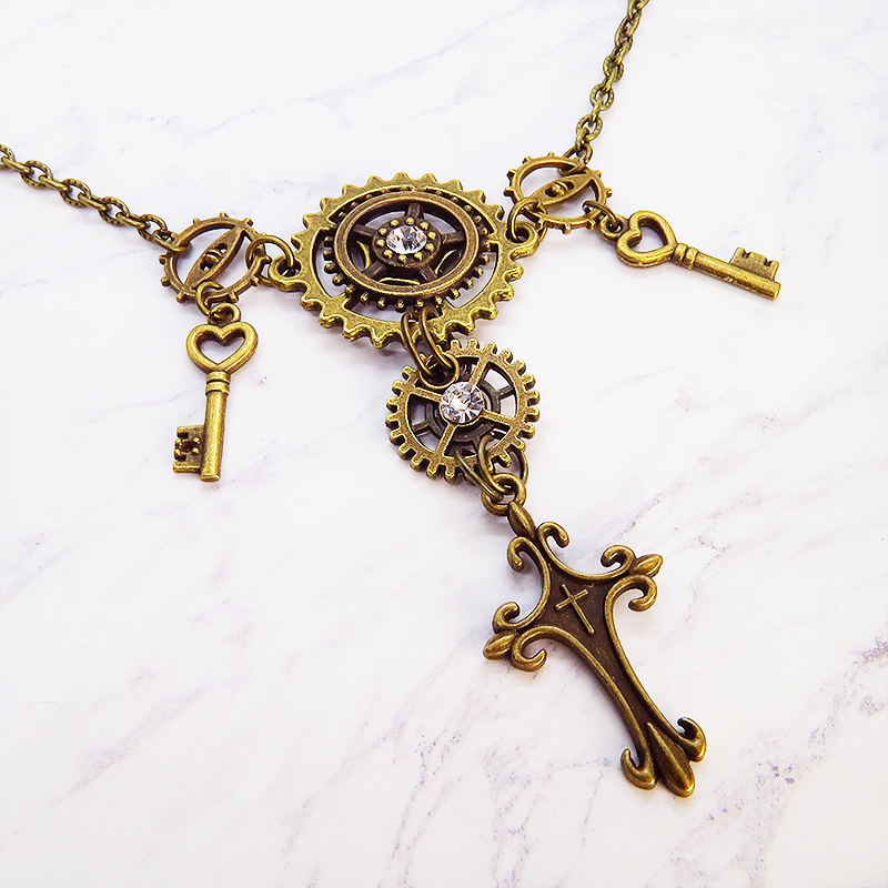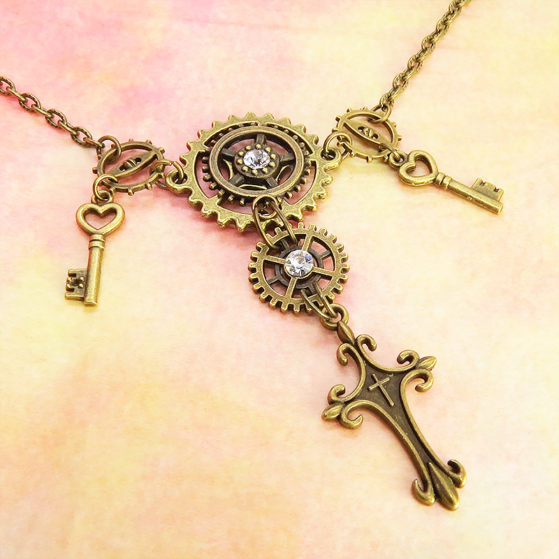 これらの要素が組み合わさることでスチームパンクの持つ独特の世界観を胸元で表現できるネックレスです