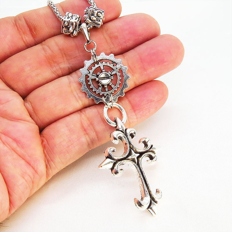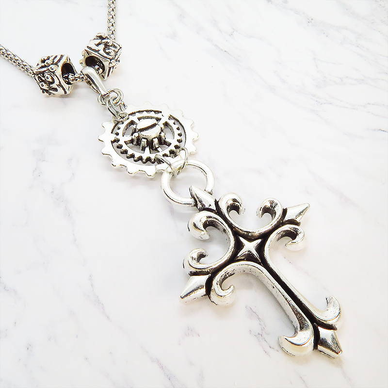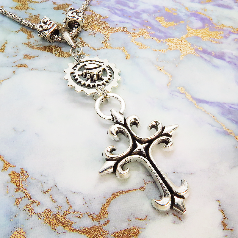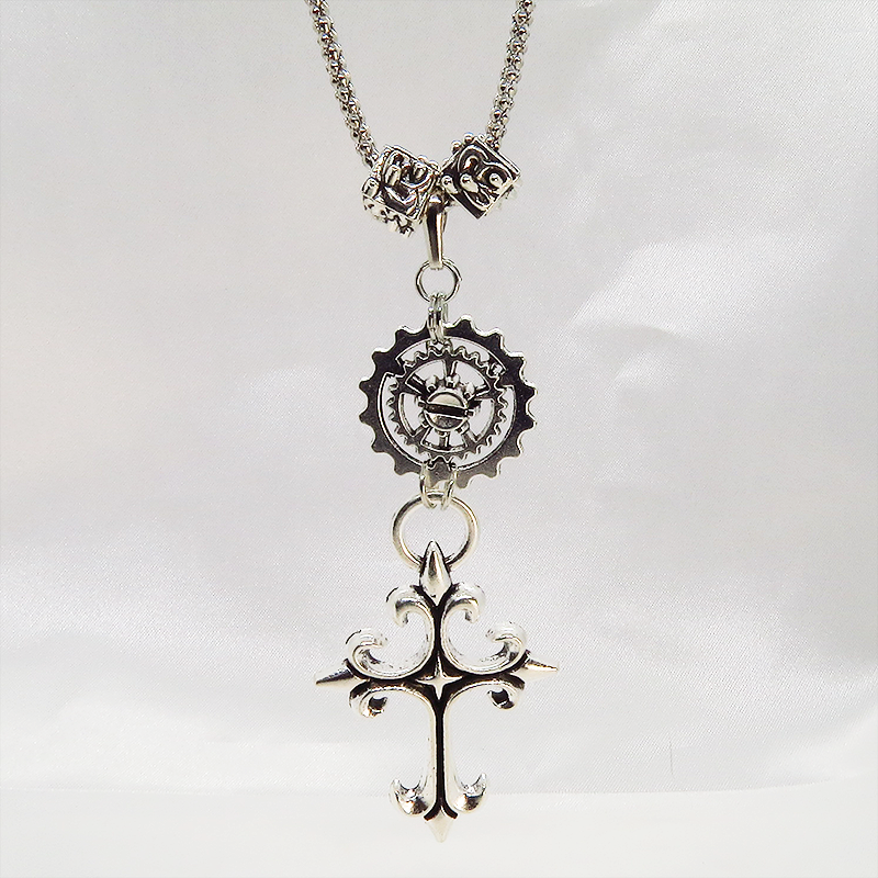 中世的な美しさを湛えたゴシック調のロザリオと精巧な歯車モチーフを組み合わせたデザインはスチームパンクの無骨さとゴシックの神秘的な雰囲気が融合した、唯一無二の魅力を放ちます