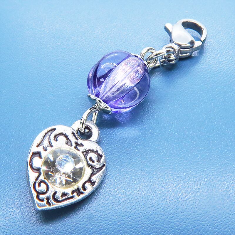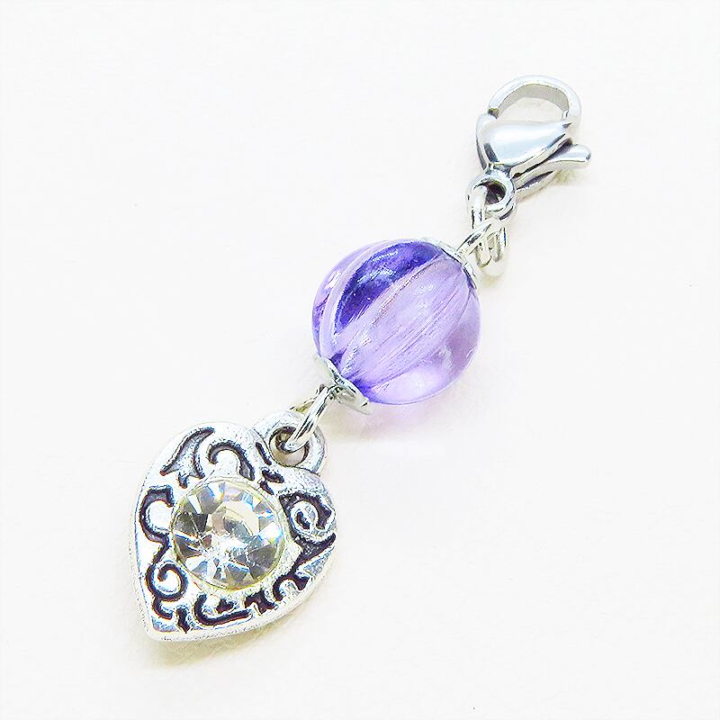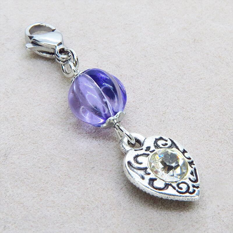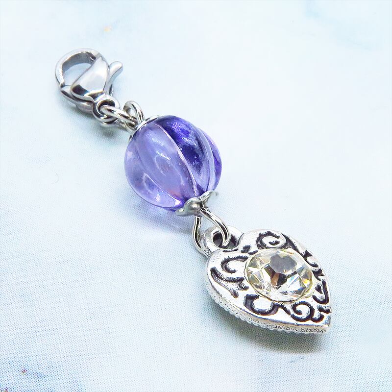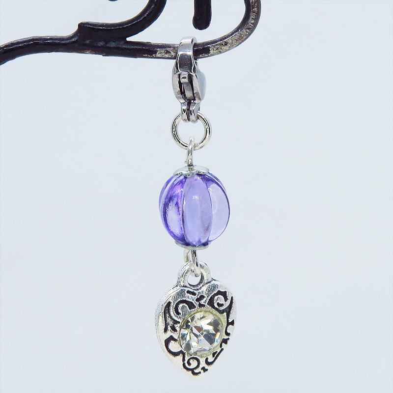 アンティークシルバーの落ち着いた輝きと深みのあるバイオレットカラーのビーズが、お手持ちのアイテムに上品な華やかさを添えるチャームです