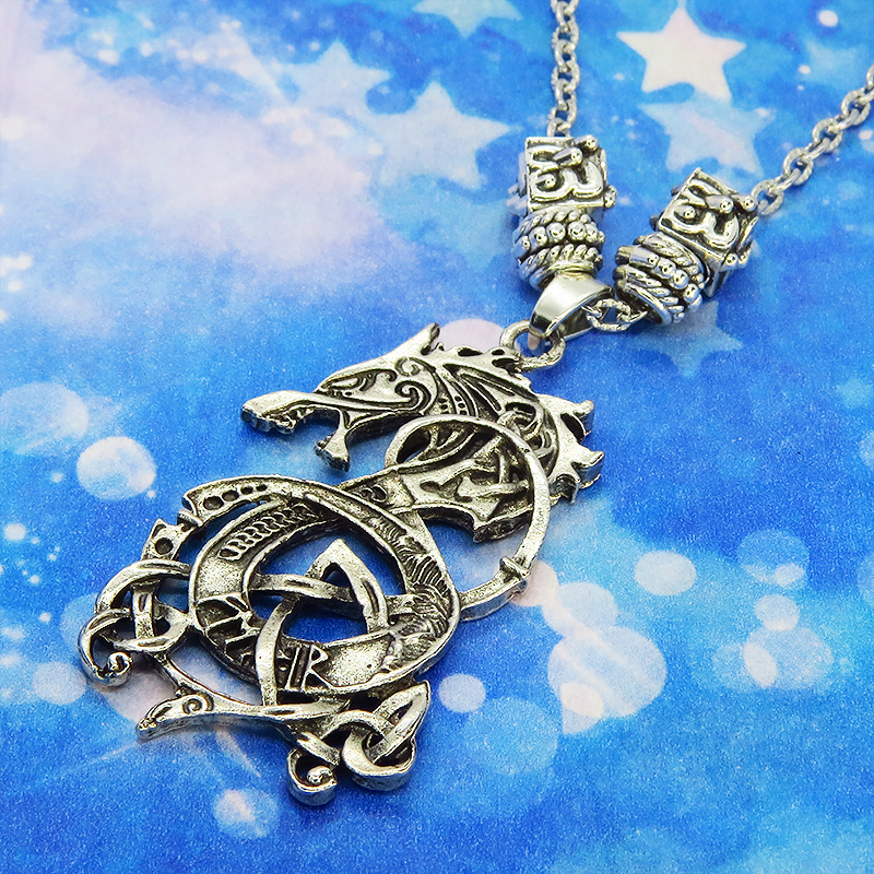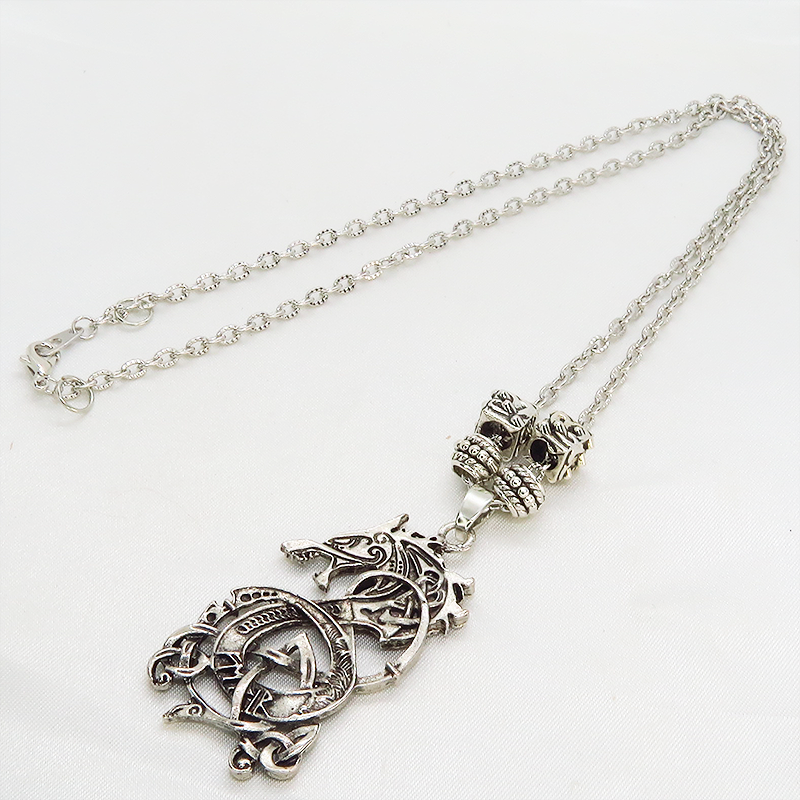 アンティークシルバーで統一されたペンダントトップは躍動感あふれるドラゴンの姿を表現