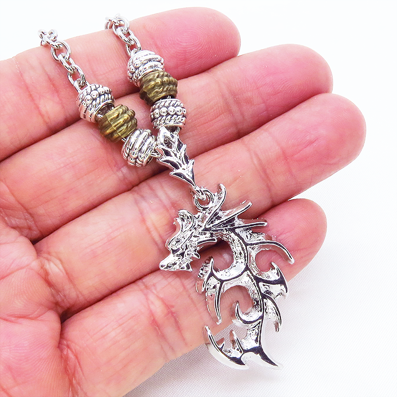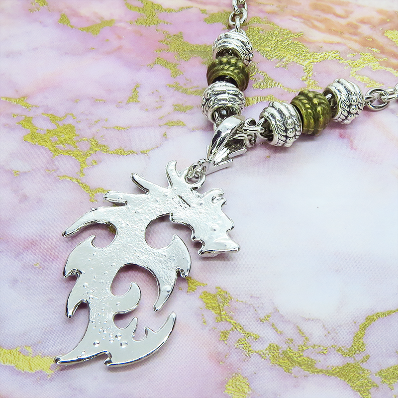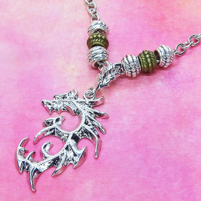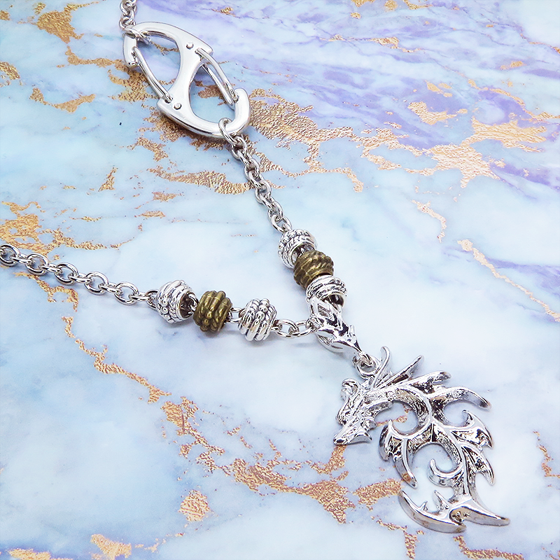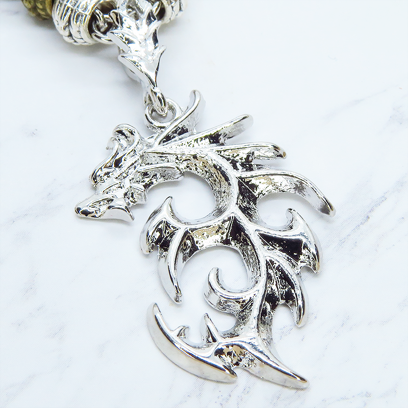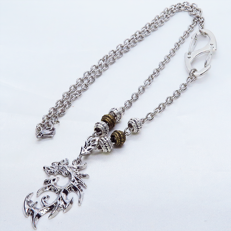 ドラゴンモチーフとメタルビーズは固定されていないため、S字カラビナをお好みの位置に調整することが可能