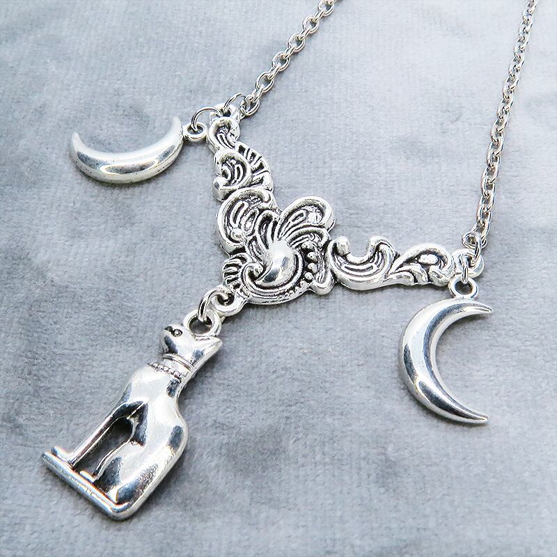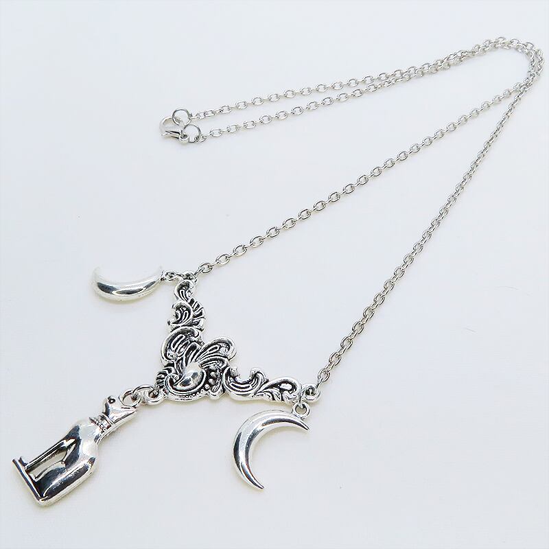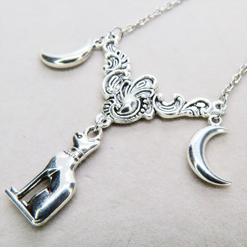 胸元で神秘的に輝くアンティークシルバーカラーのペンダントネックレス