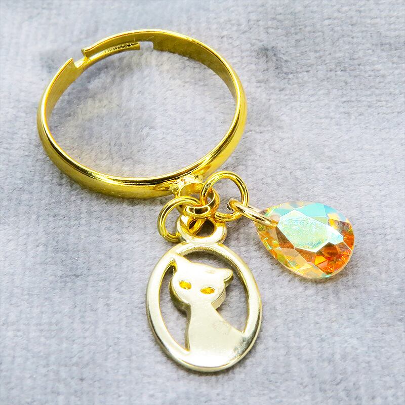 指元で揺れるクリスタルと猫のチャームがあなたの仕草に愛らしい動きと輝きを添え、周囲の視線を集めます