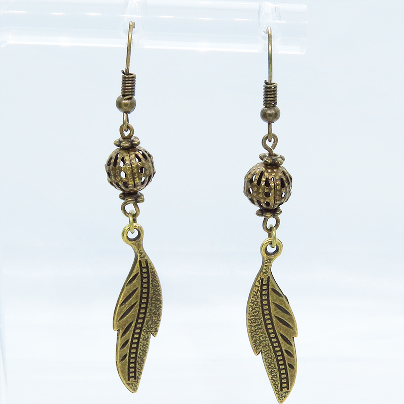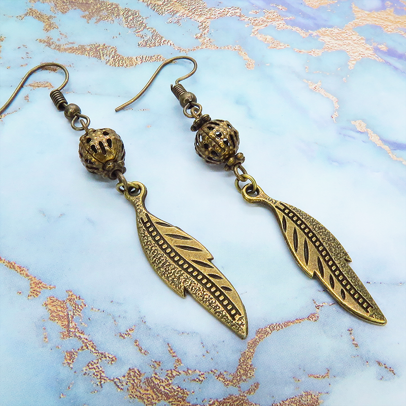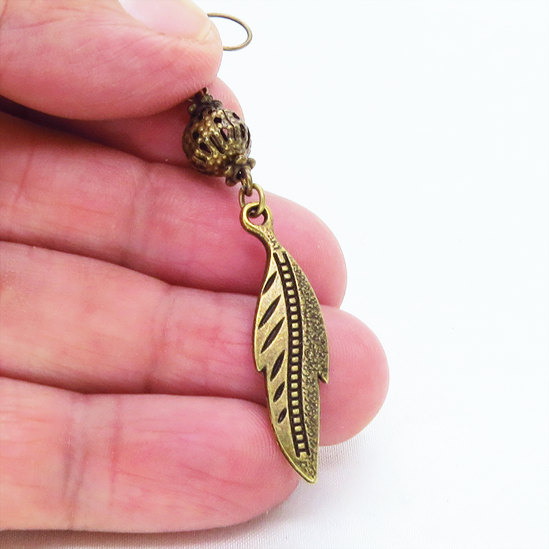 フェザーモチーフとメタルビーズが揺れるたびにキラキラと輝きます
