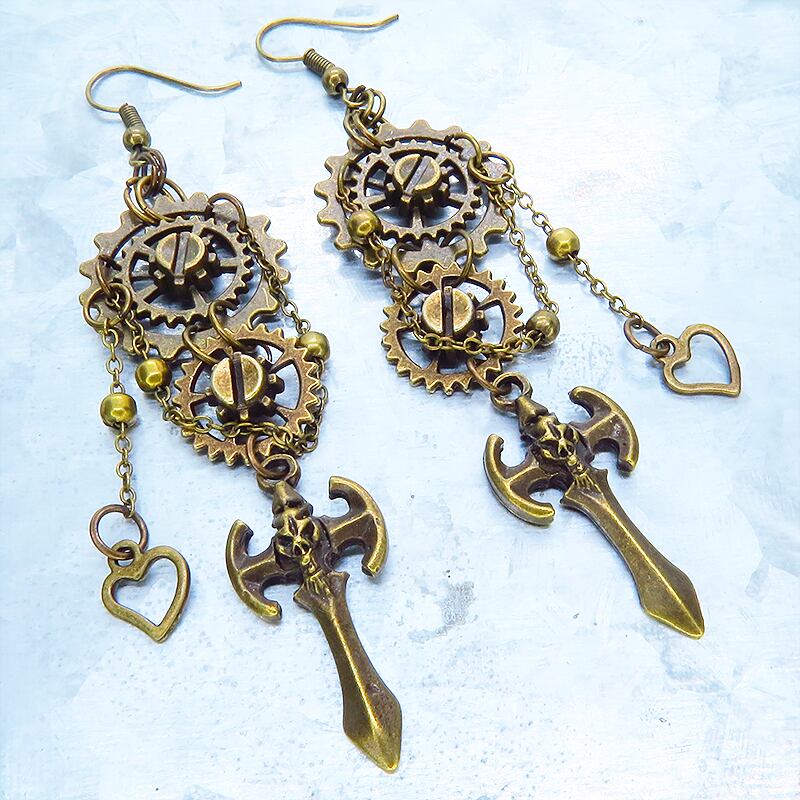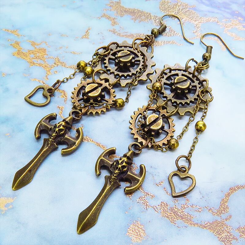 アンティークゴールドの歯車とゴシック調のソードが織りなすスチームパンクの世界観が広がります