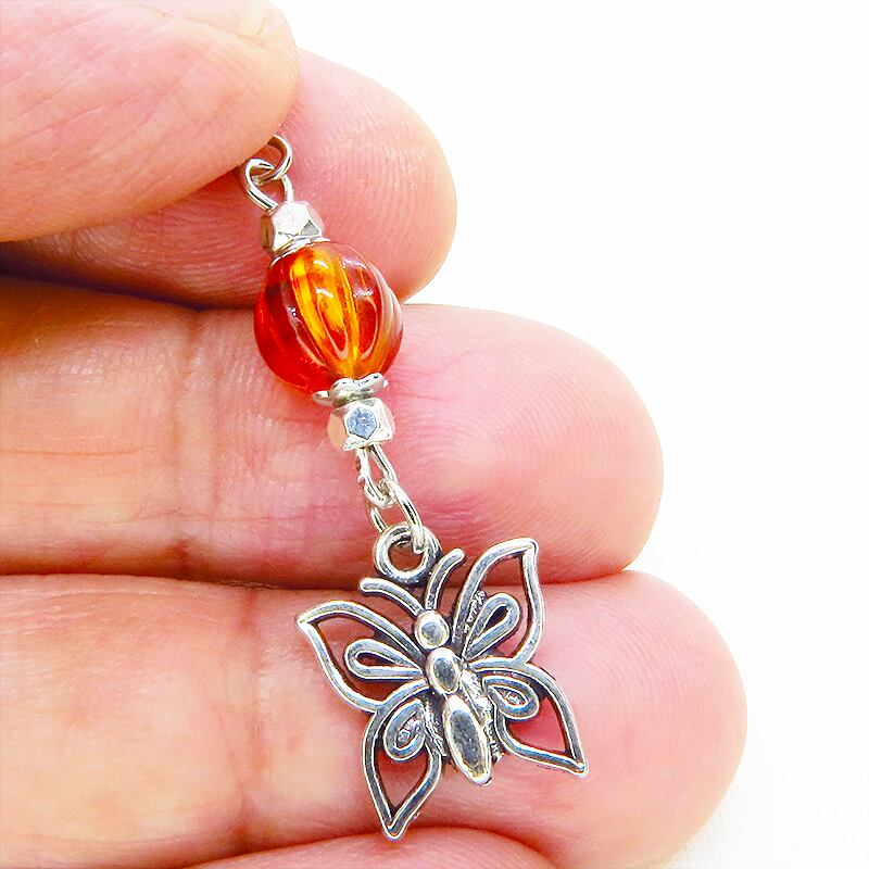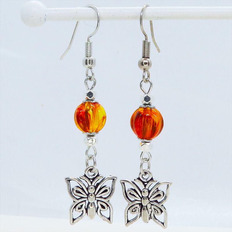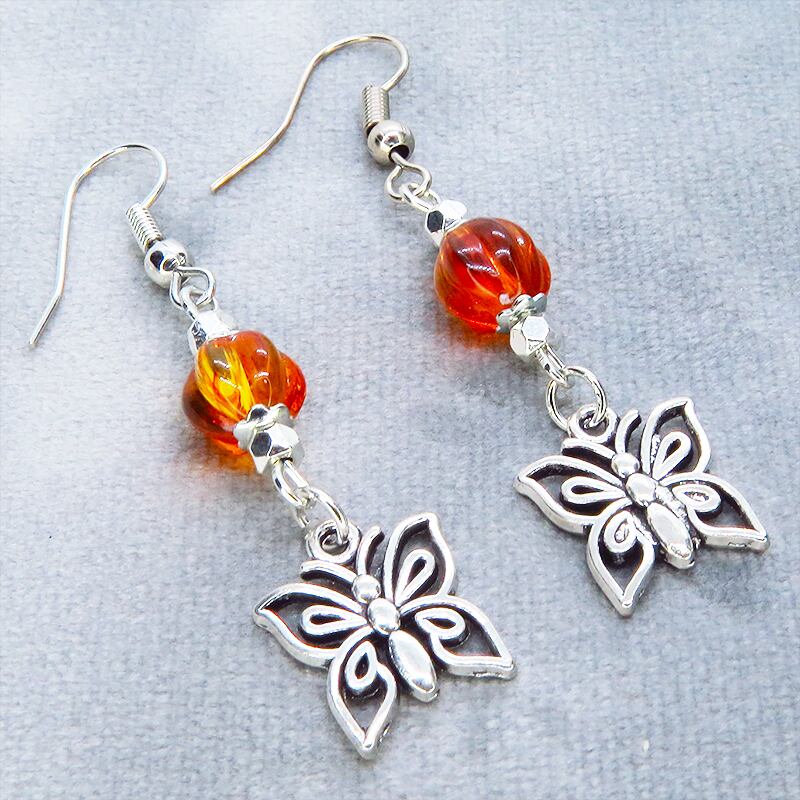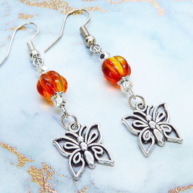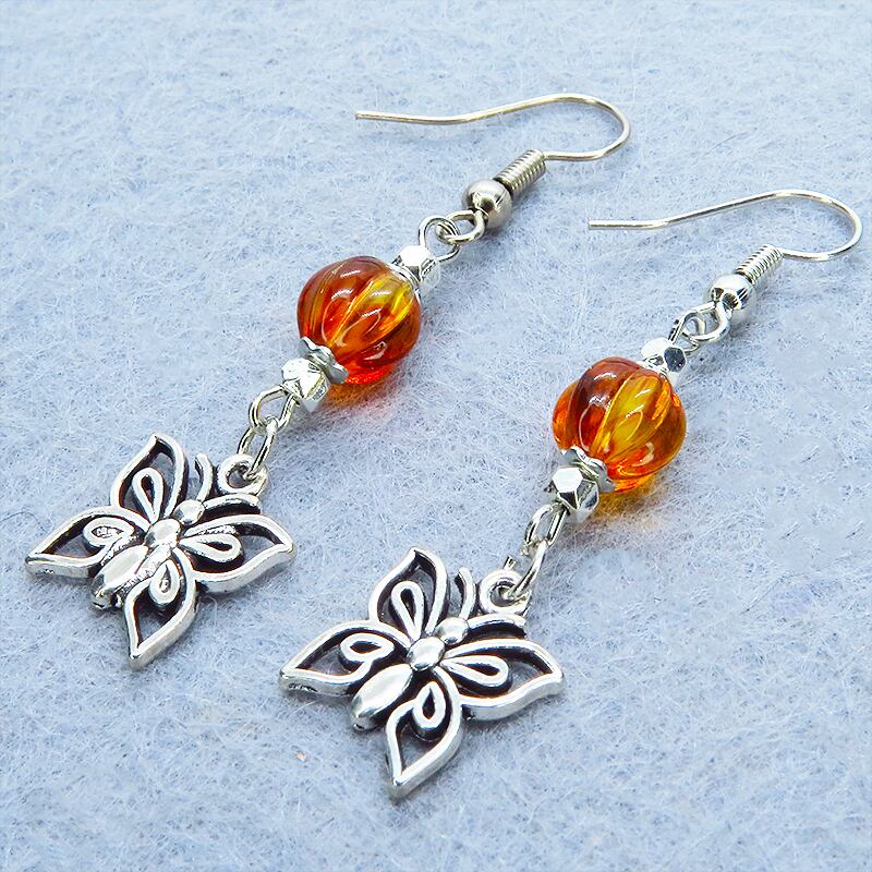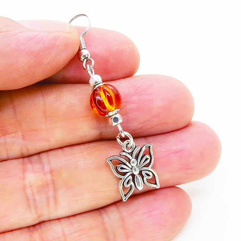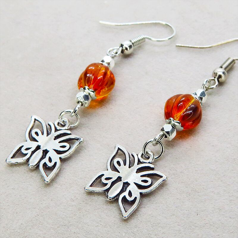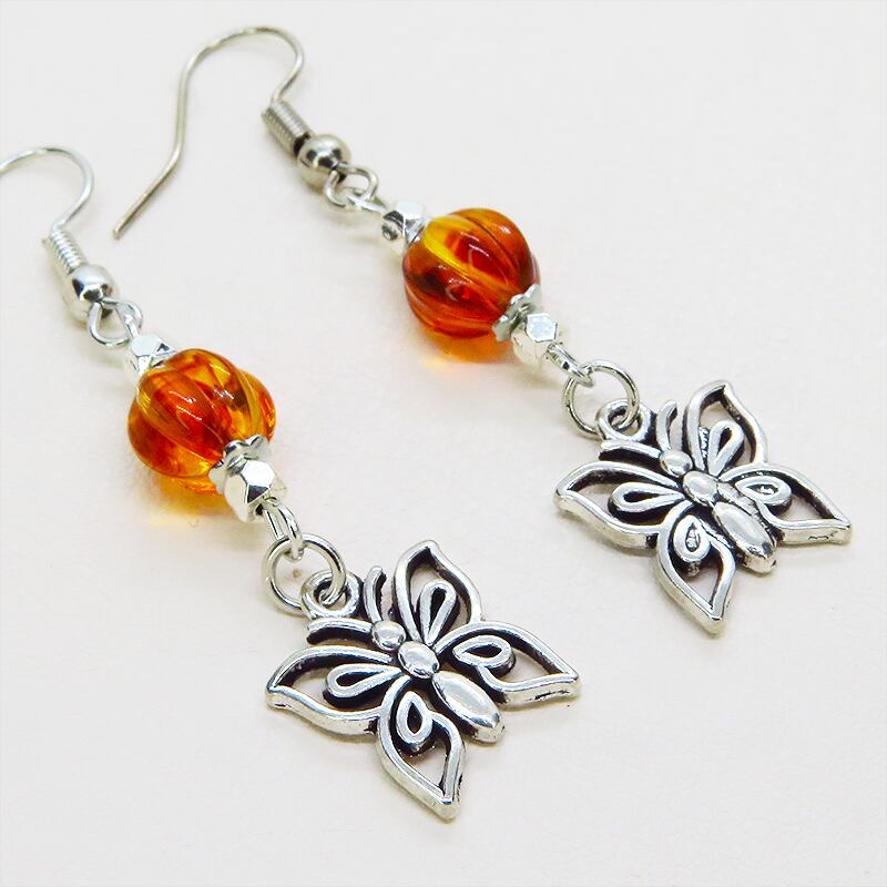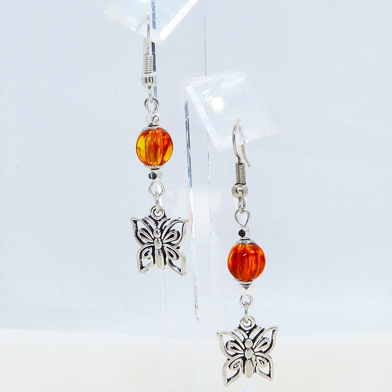 さりげなく耳元に輝く蝶とビーズのモチーフが、あなたの個性を上品に演出してくれるでしょう