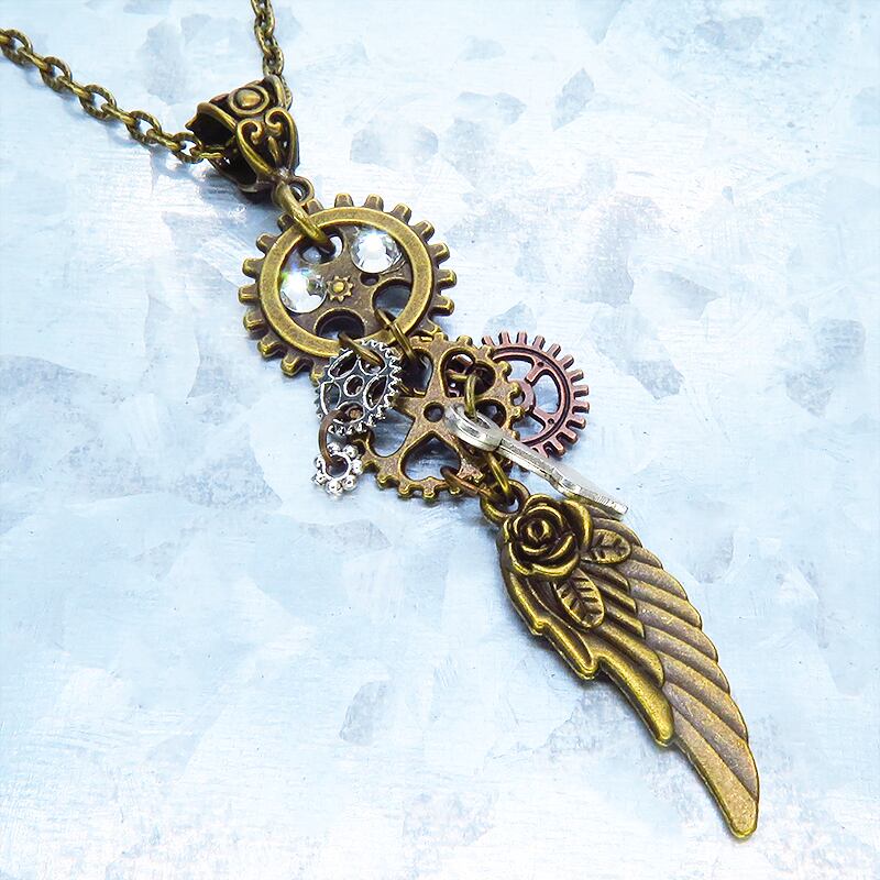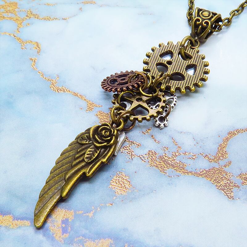 アンティークゴールドの翼と歯車が織りなすスチームパンクの世界観が広がります