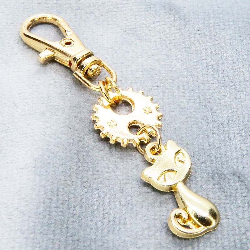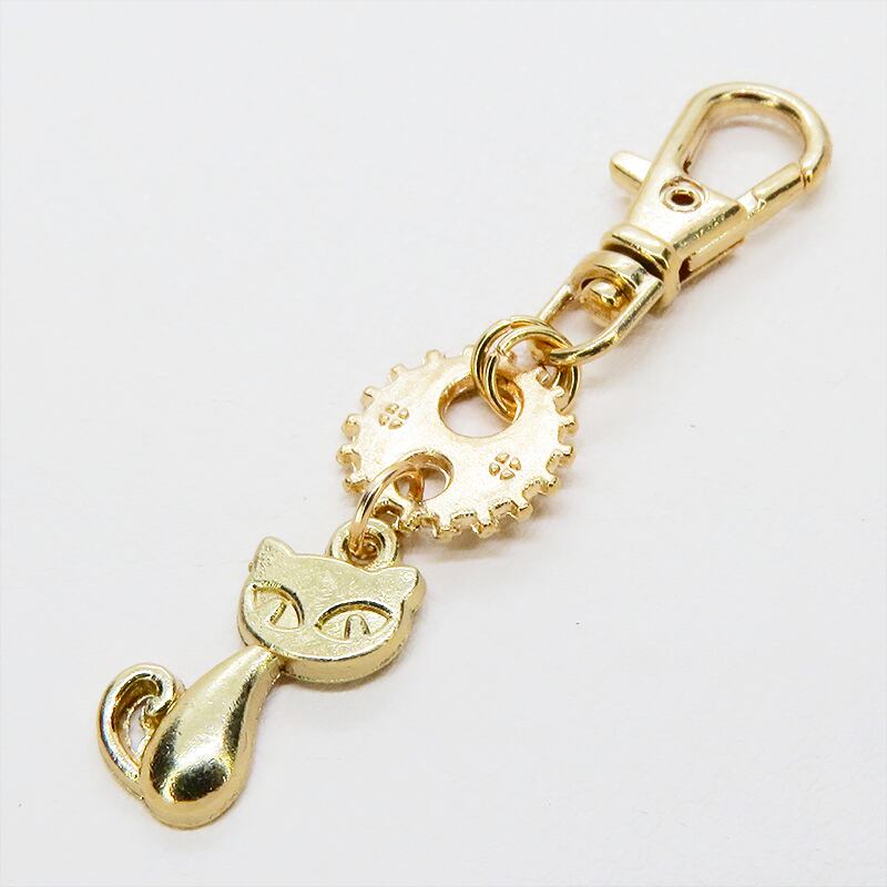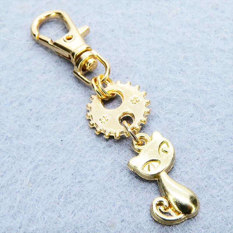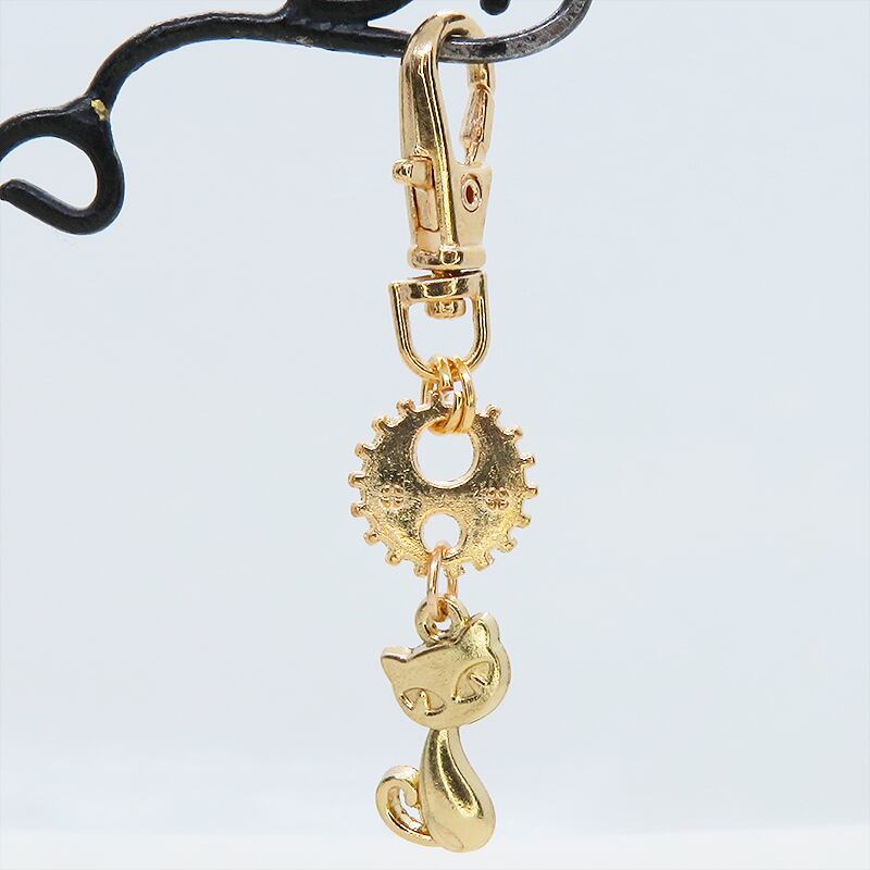 マットゴールドカラーの猫と歯車が組み合わさり、どこかスチームパンクな雰囲気を漂わせます
