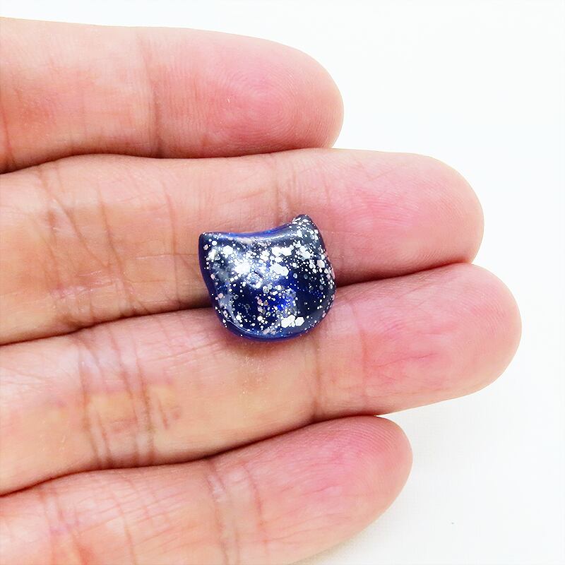 猫のフェイスの表面にはシルバーカラーのラメを散りばめ、きらきらと光を反射して見るたびに心をくすぐります