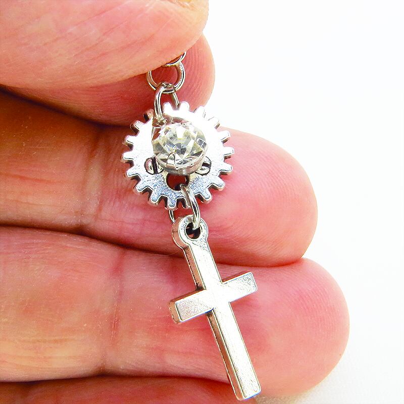 メインとなるのは、繊細なロザリオモチーフと歯車を組み合わせたチャーム