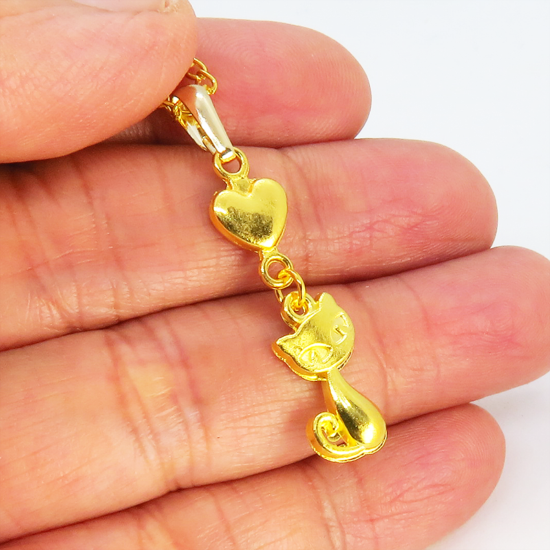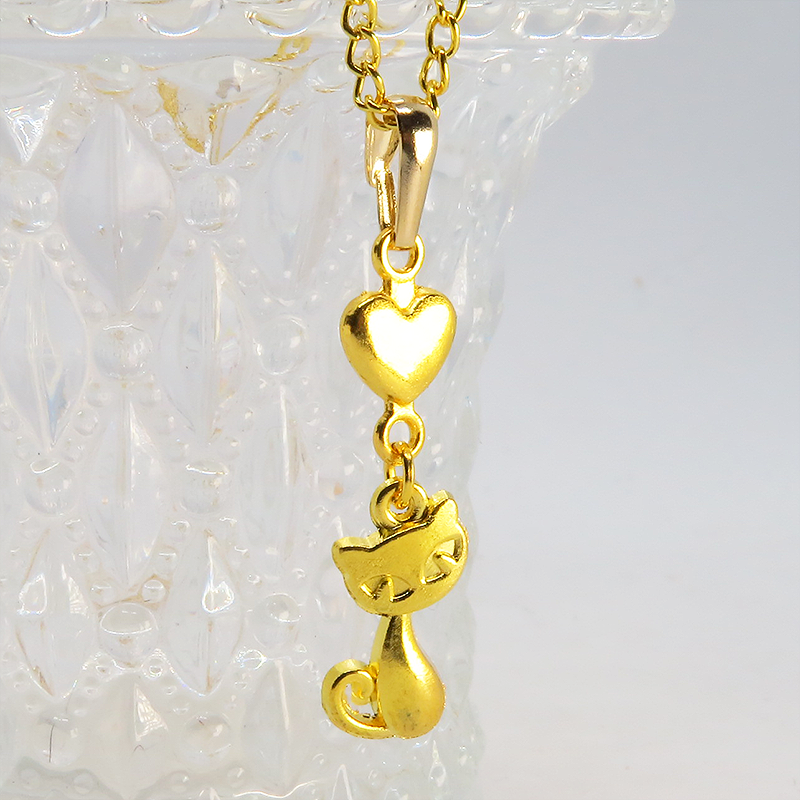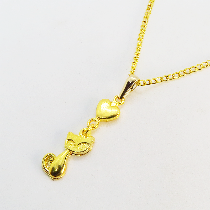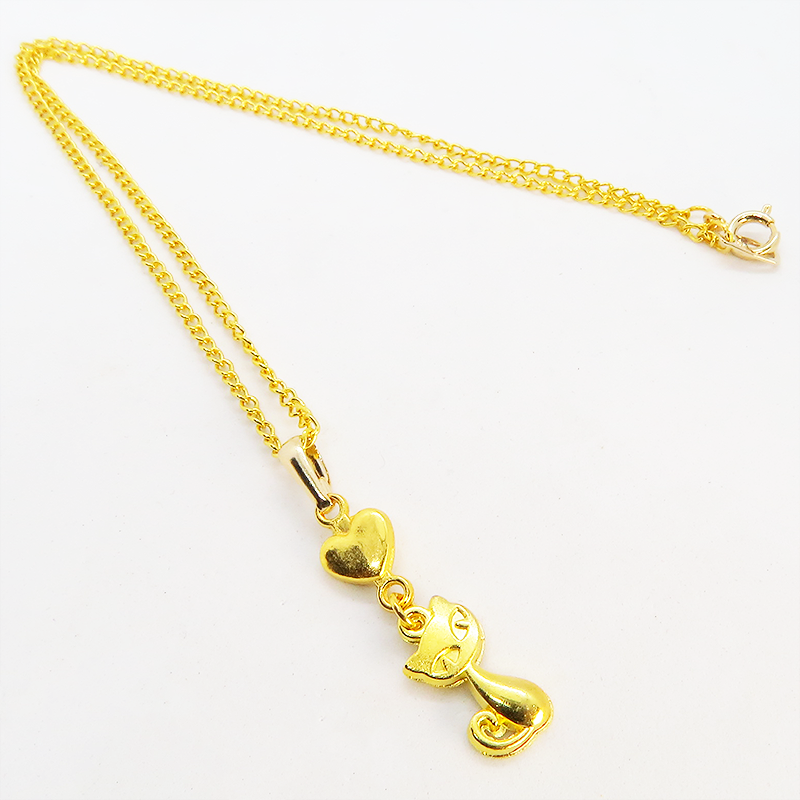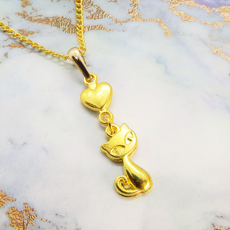 ゴールドカラーで統一した猫とハートのシンプルで可愛いネックレスです