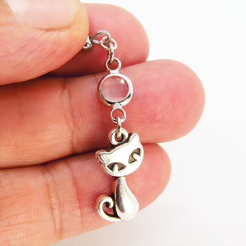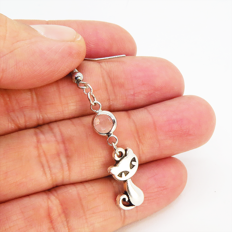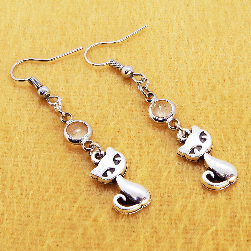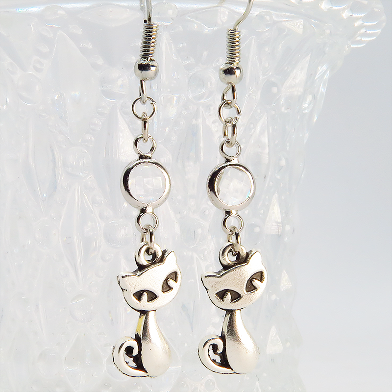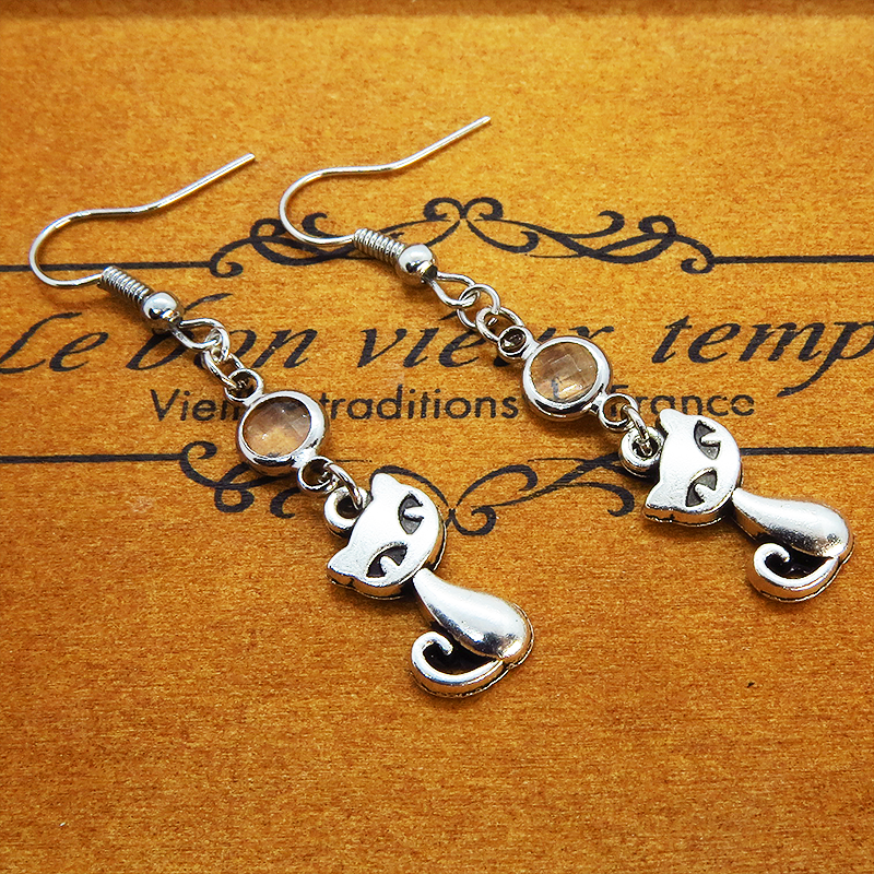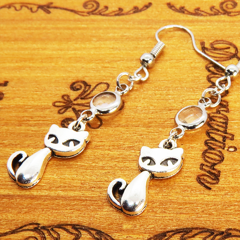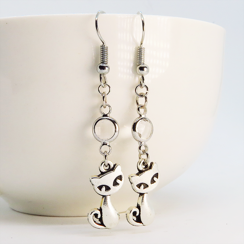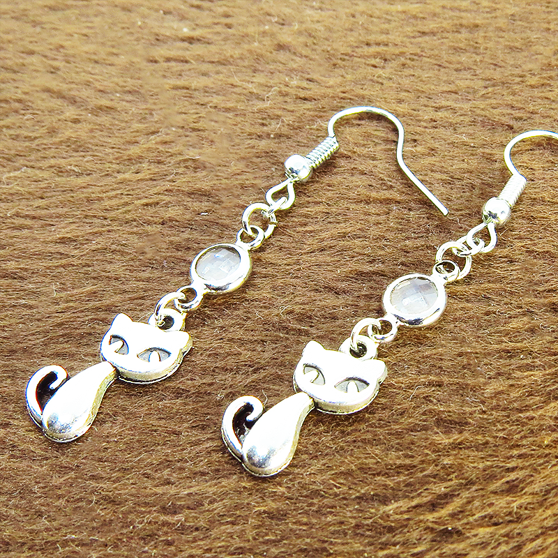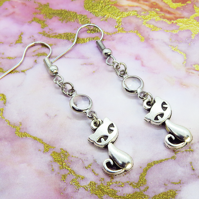アンティークシルバーの猫モチーフに透明なガラスパーツを組み合わせたシンプルで大人可愛いピアスです