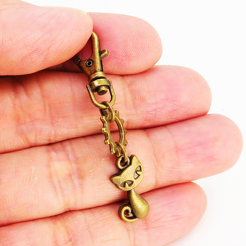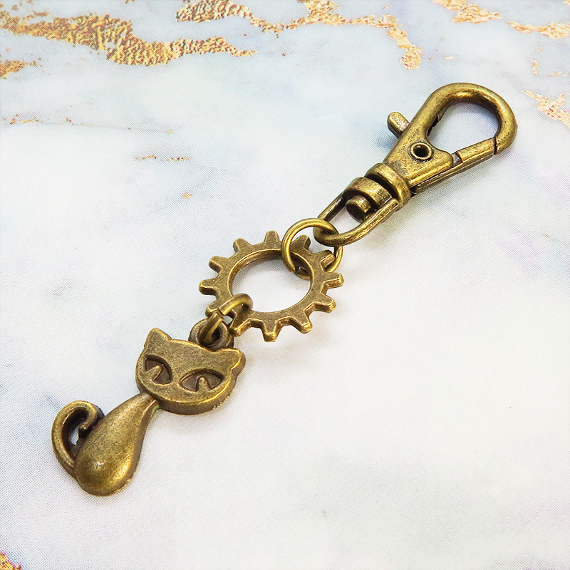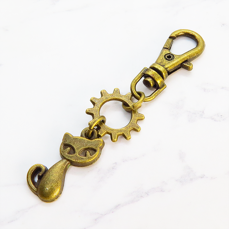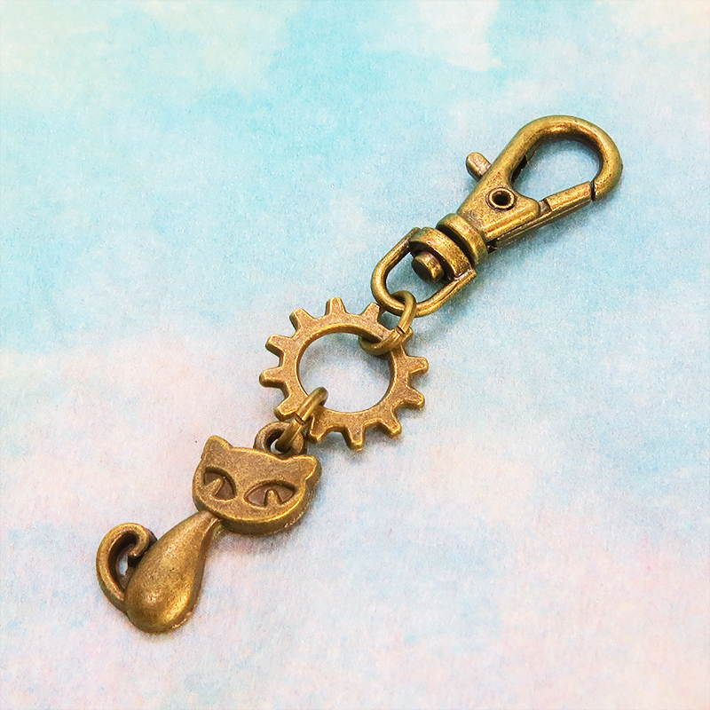 猫と歯車のモチーフを組合せたコンパクトで可愛いチャーム・キーホルダーです