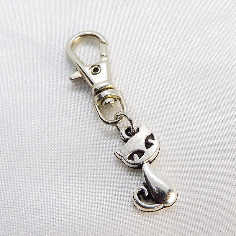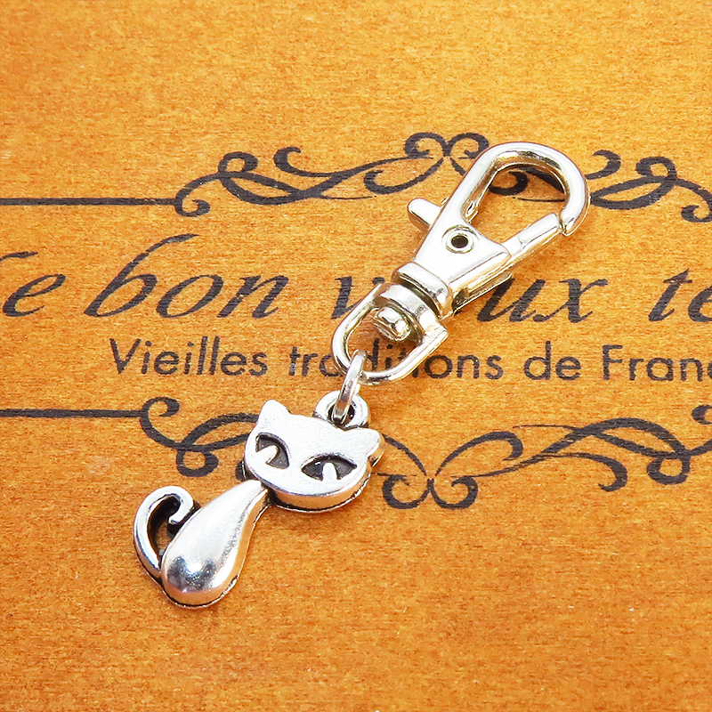 ちょこんと可愛い、アンティークシルバーの猫モチーフキーホルダー