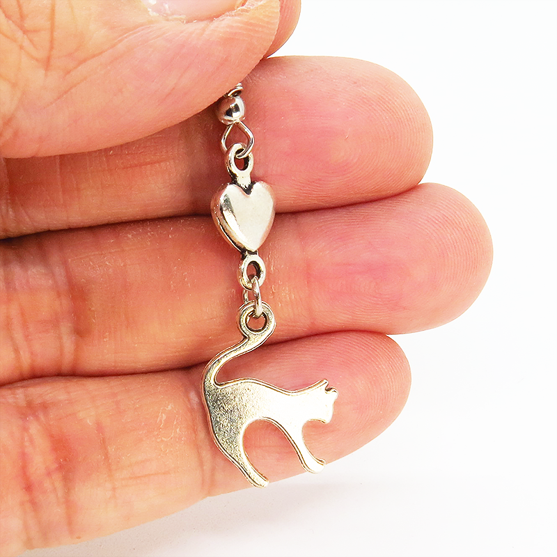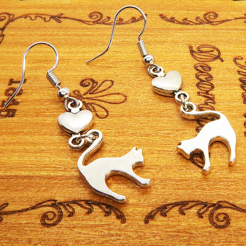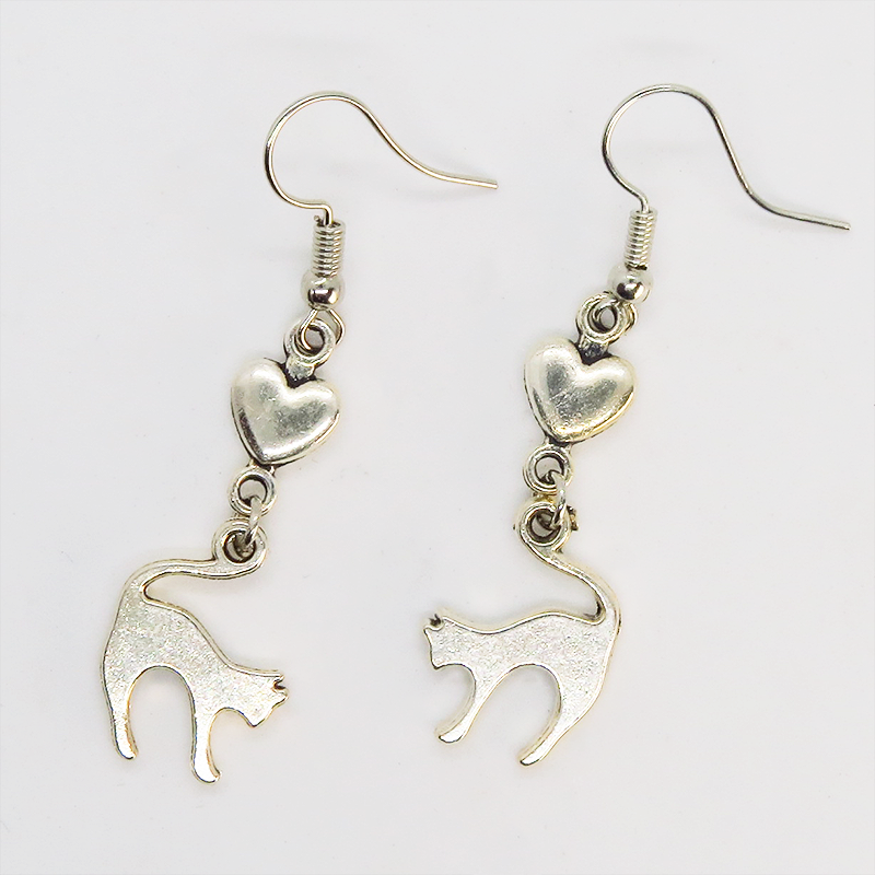 跳ね猫シルエットとハートのモチーフを組合せたコンパクトなピアスです