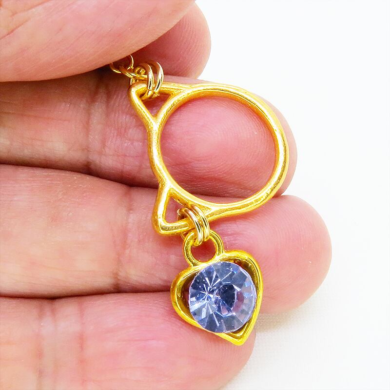 そのフレームから美しいヴァイオレットカラーのクリスタルガラスを埋め込んだハートモチーフが吊り下げられています