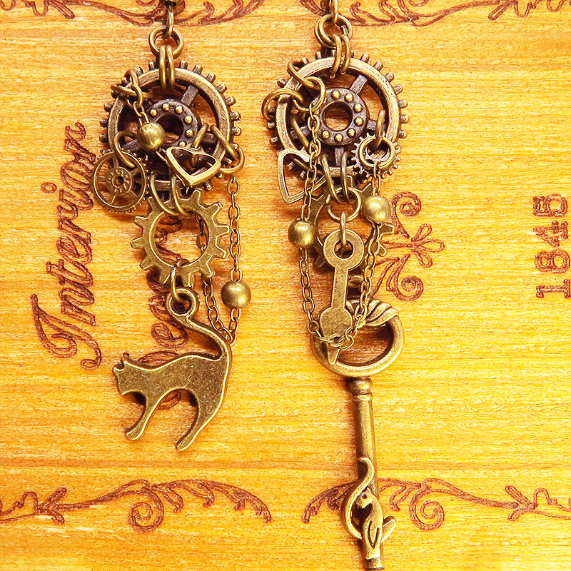 猫のチャームでネコ好きをアピールできるのはもちろん、人気のスチームパンク風なアンティーク感が大人可愛いを演出します