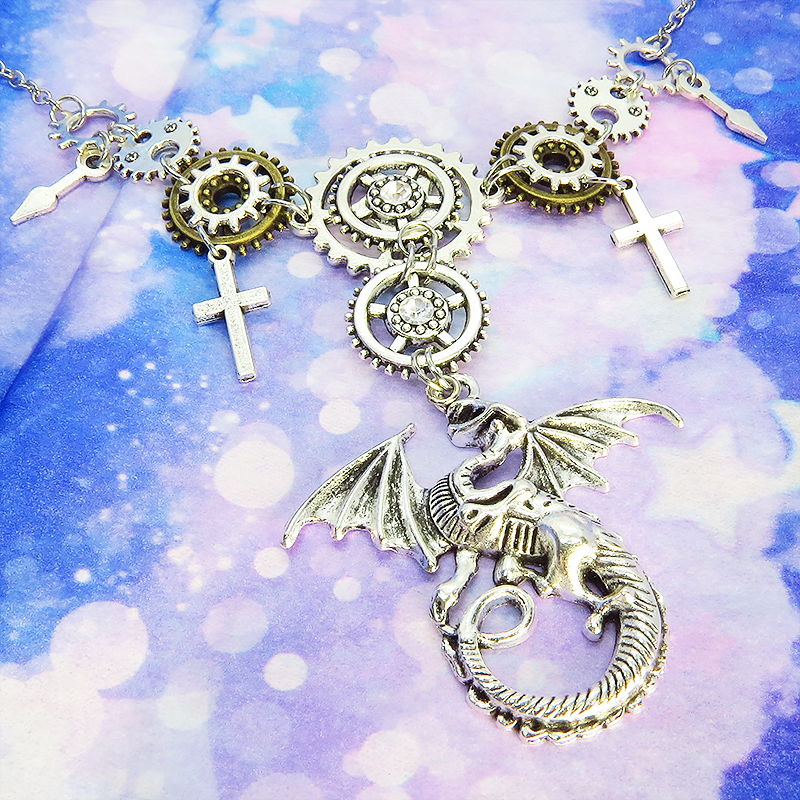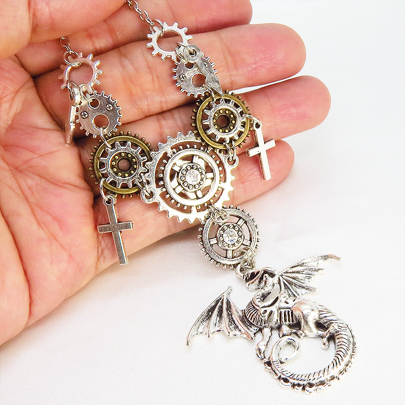 スチームパンクの世界観を普段使いしやすいネックレスに落とし込みました
