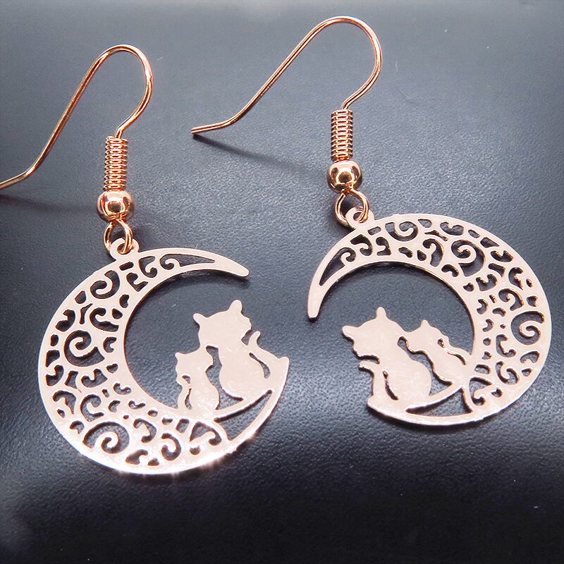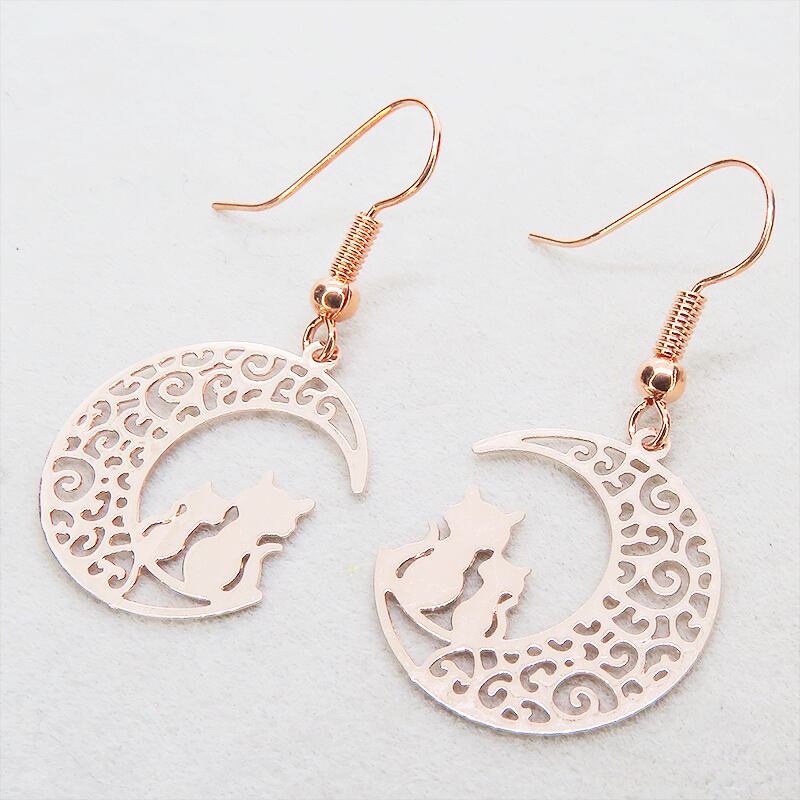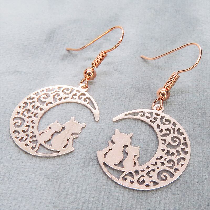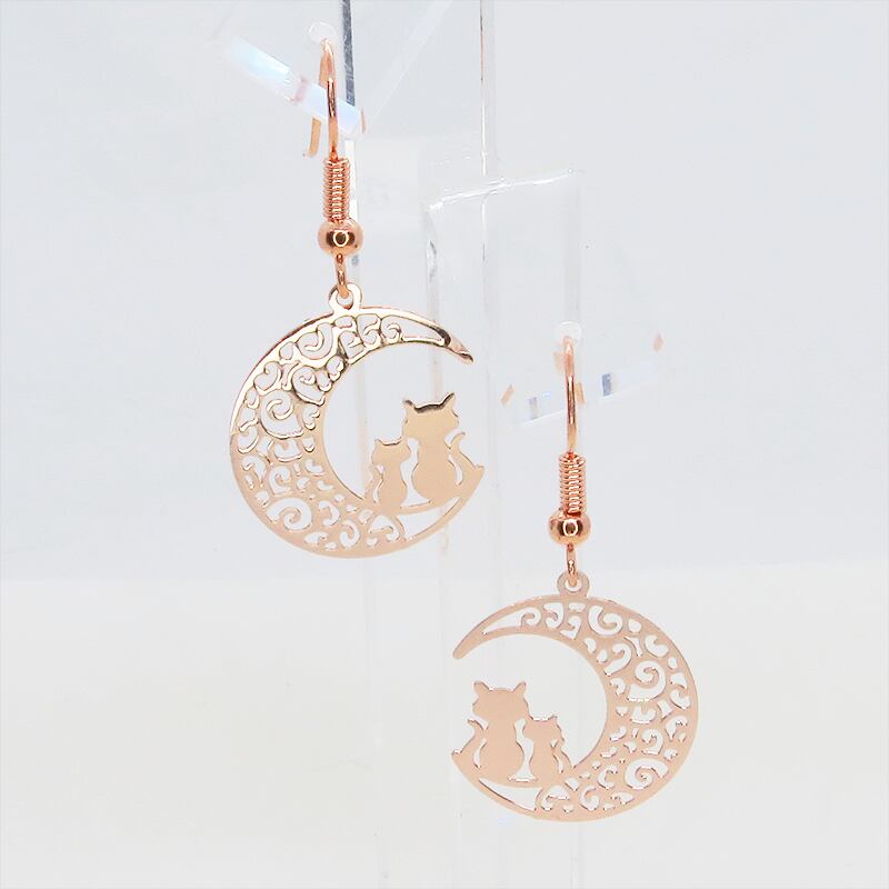 夜空に浮かぶ三日月を舞台にした、心温まるワンシーンを感じさせる耳飾り