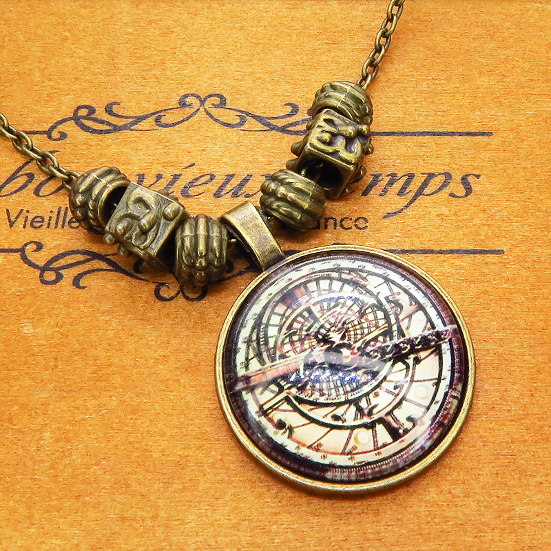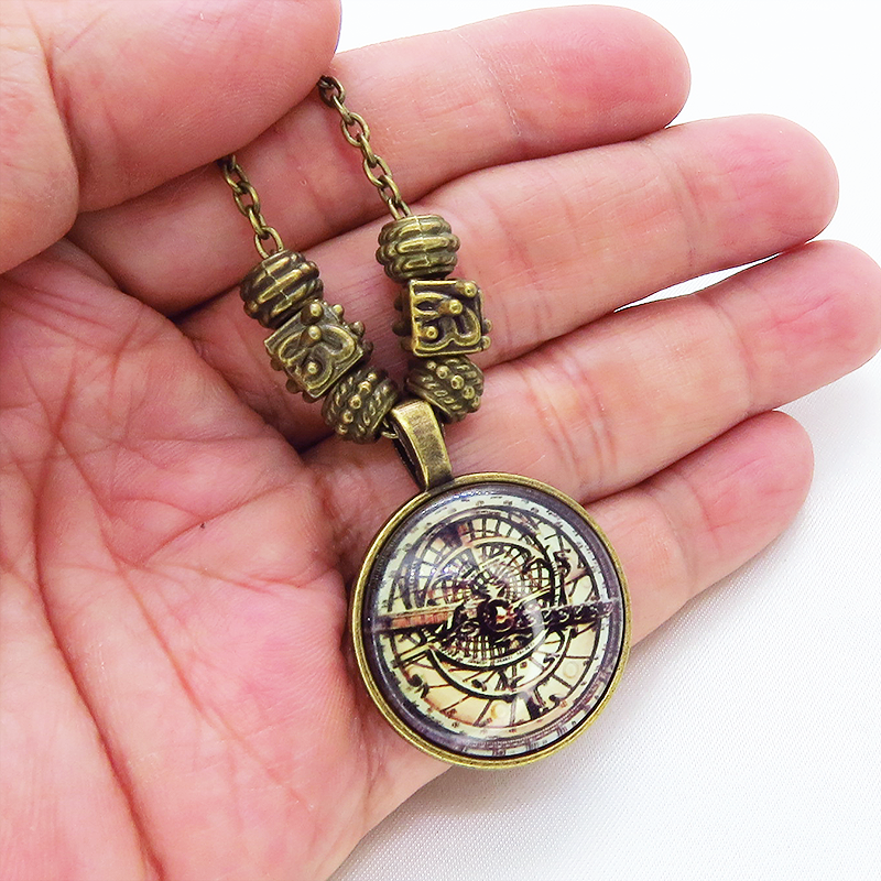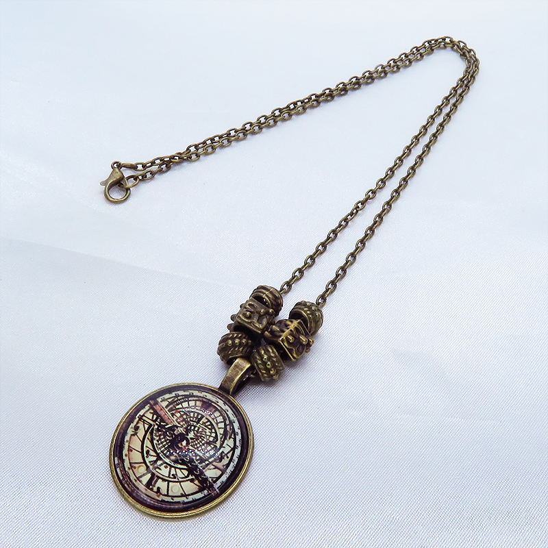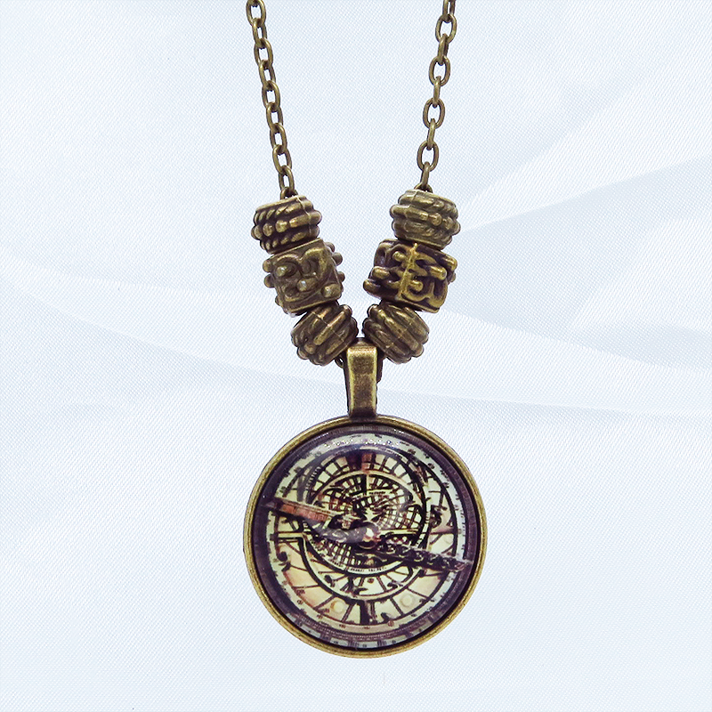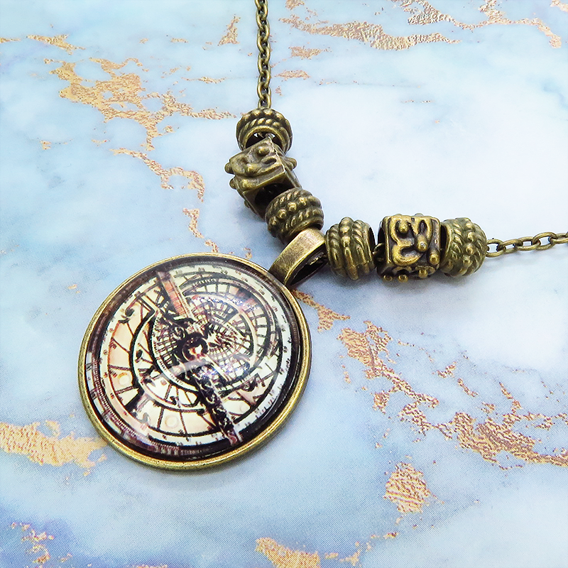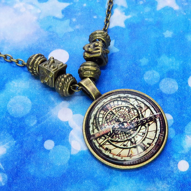 ペンダント部分に方位磁針・羅針盤のような幾何学的なイラストを用いたスチームパンク風ネックレスです