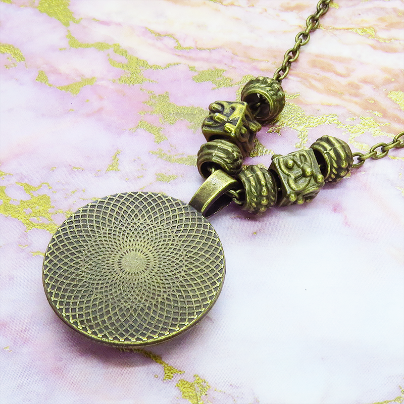 アンティークカラーのペンダントフレームとチェーンで統一して一体感をもたせています