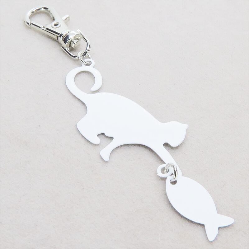 魚を捕まえようとそっと前足を伸ばす猫の姿を、クリーンなホワイトカラーのステンレスで表現しました