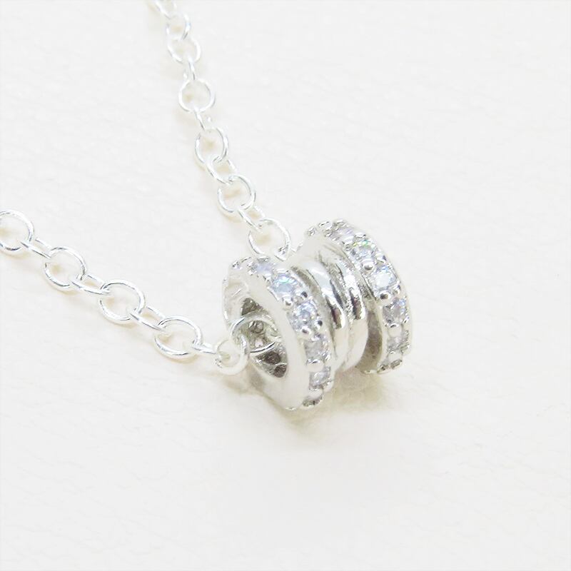 シンプルでありながら、チャームに埋め込まれたキュービックジルコニアが、上品な存在感を放ちます