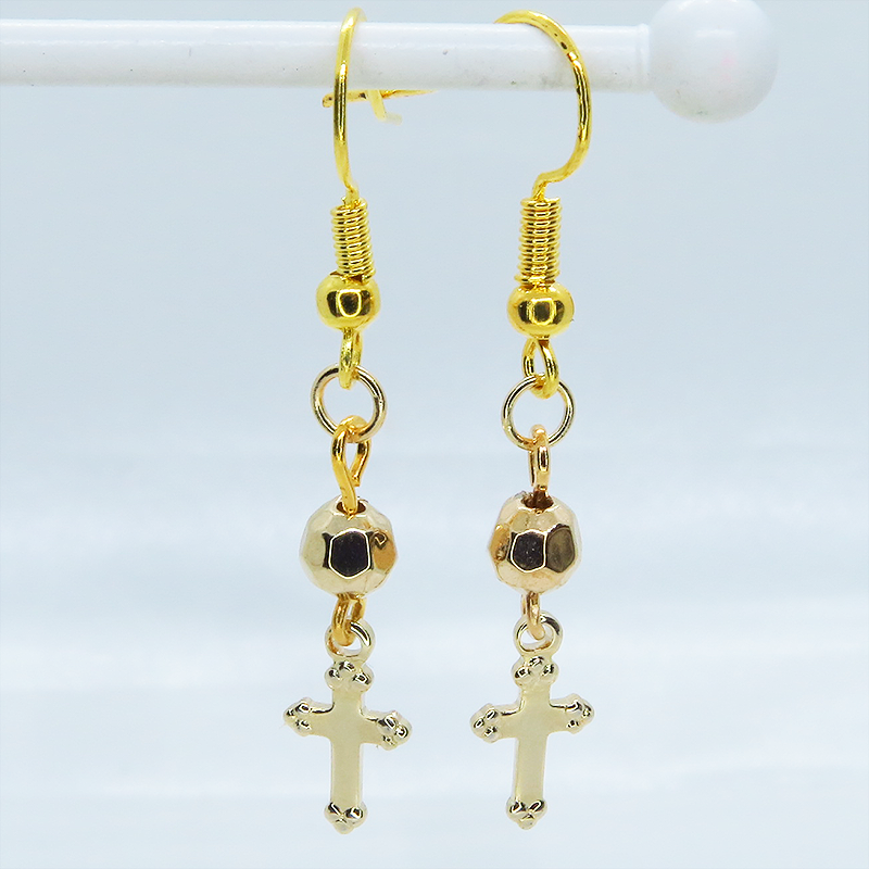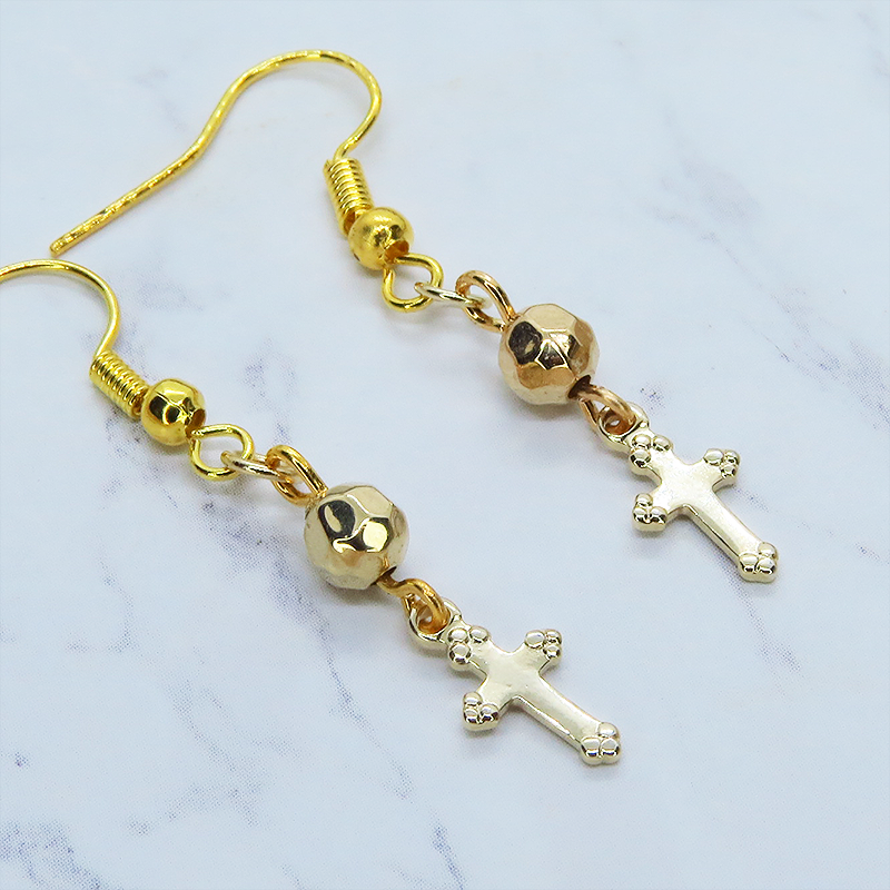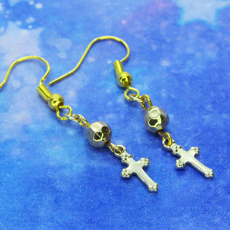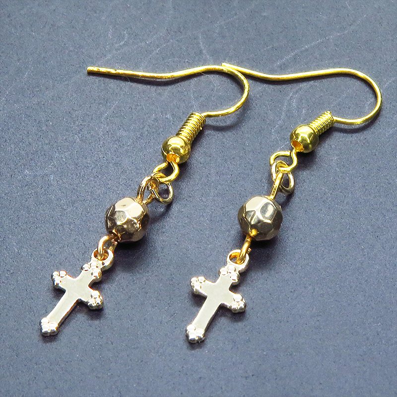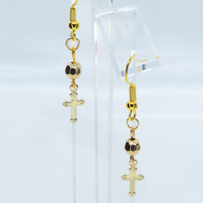 コンパクトなロザリオチャームにメタルビーズを組み合わせた小さいけどキラキラ輝く大人可愛いピアスです