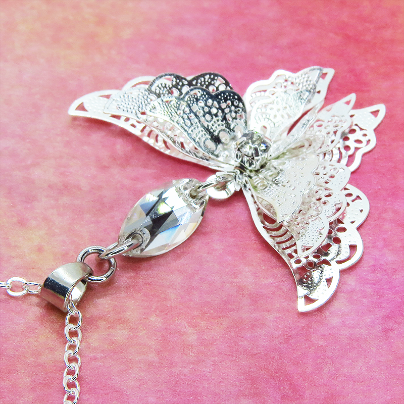 大人可愛いを演出する蝶のネックレスに仕上がっています