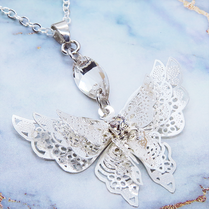 美しいシルバーカラーの蝶のペンダントネックレスです