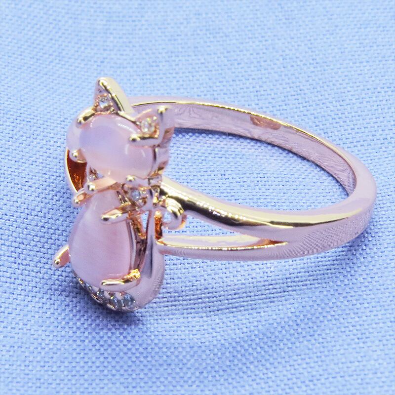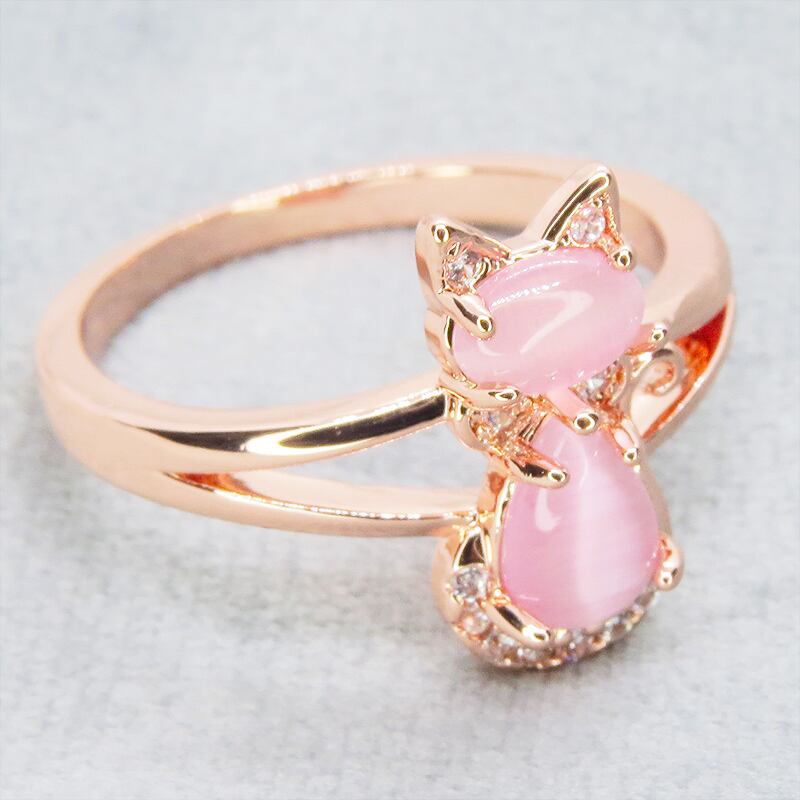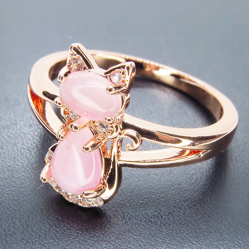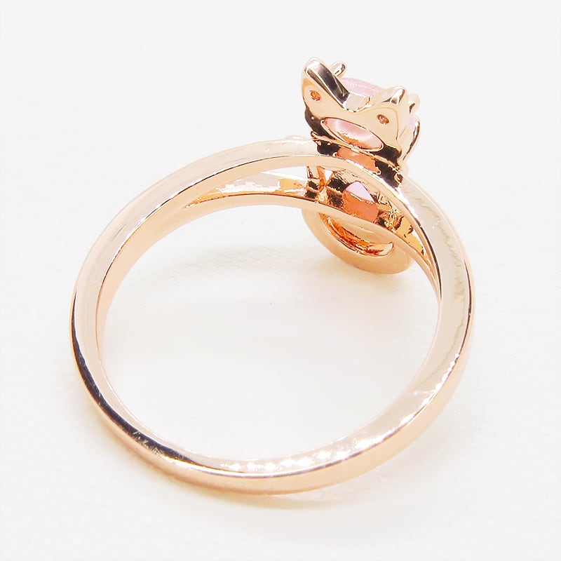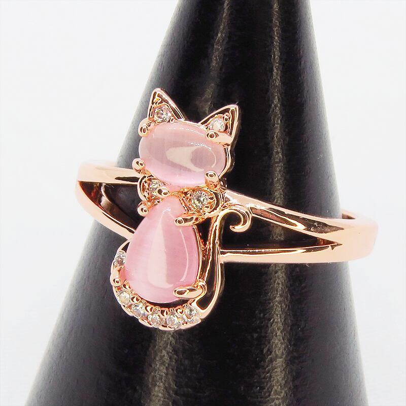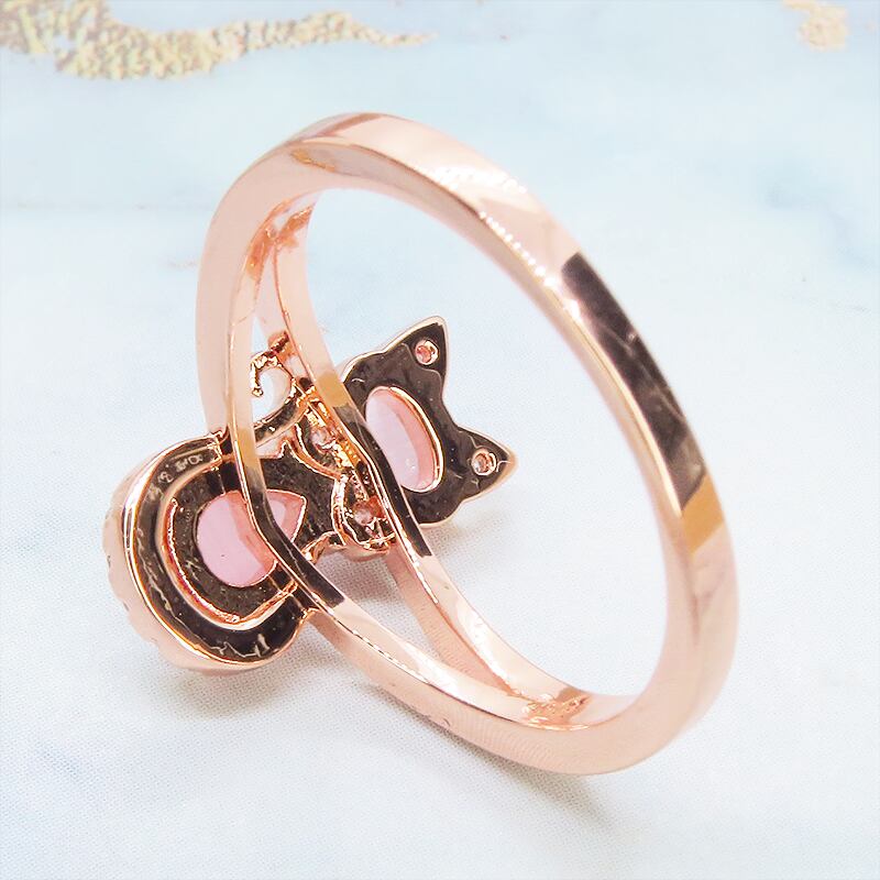 肌を美しく見せてくれるローズゴールドカラーの台座にクリアピンクに澄んだアクリル製の猫シルエットをあしらいました