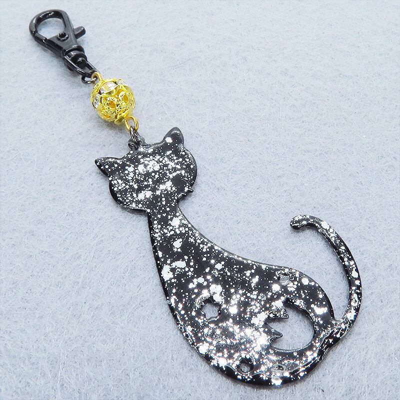 少し大きめの黒猫シルエットモチーフをベースに表面にはシルバーラメを贅沢に散りばめました
