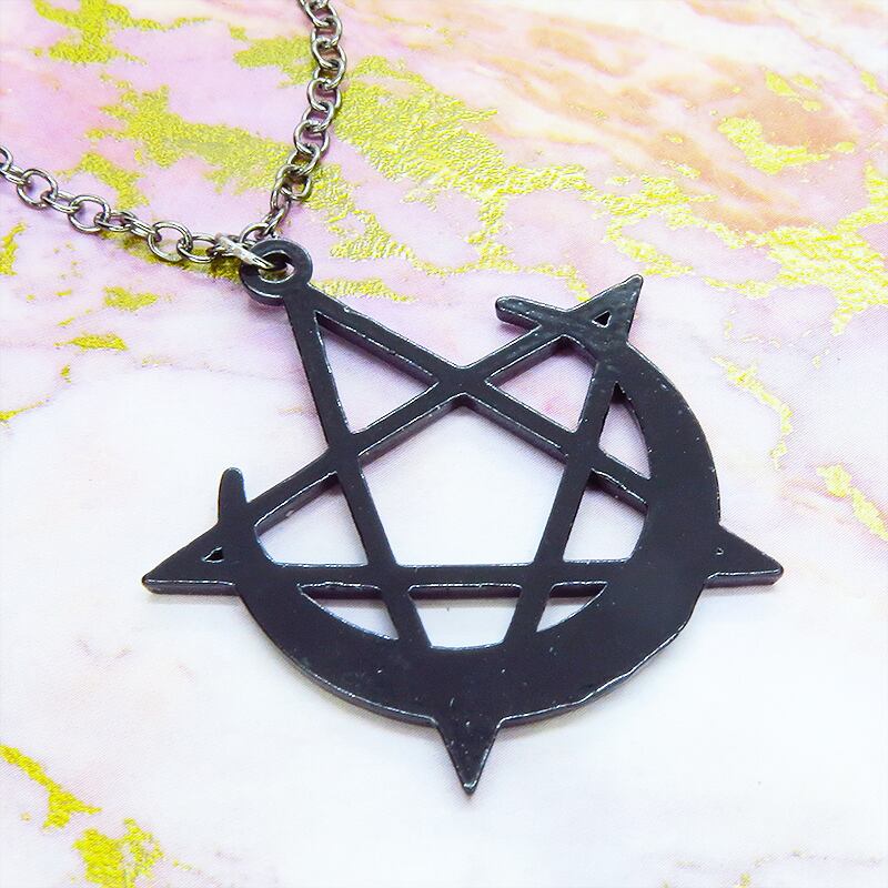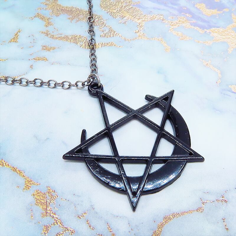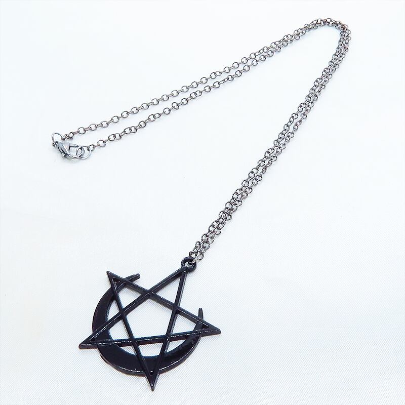 五芒星と三日月を組合せて黒でカラーリングした印象に残るペンダグラムペンダント・ネックレスです