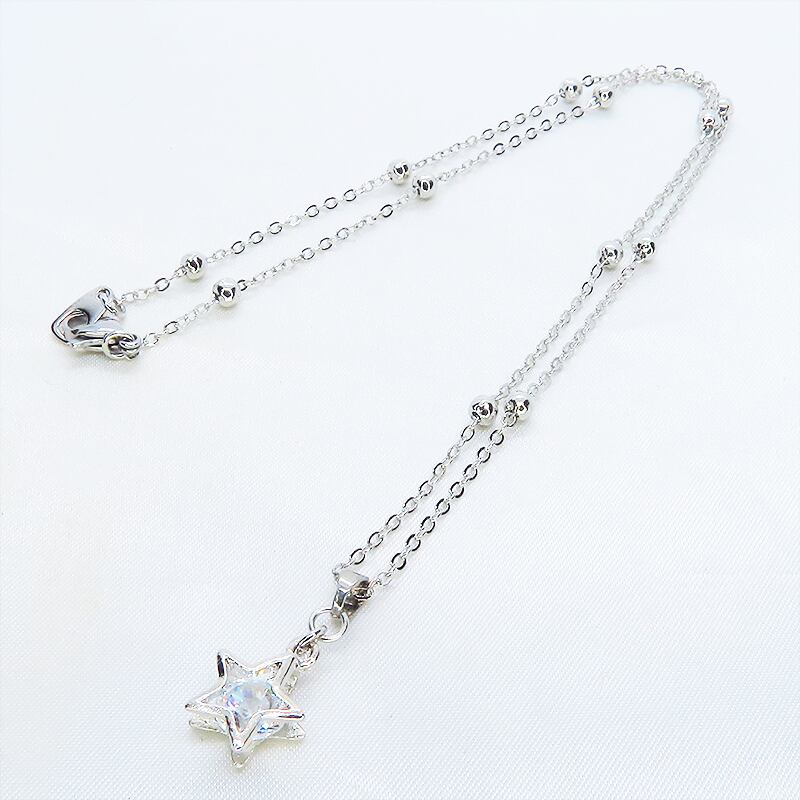 シンプルなプレーンチェーンとは一味違う、リズム感のあるシルバーの輝きが、トップの星モチーフをより一層引き立ててくれます
