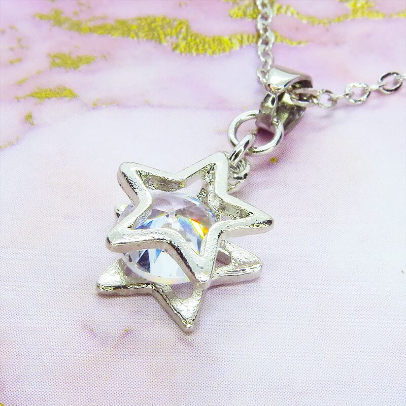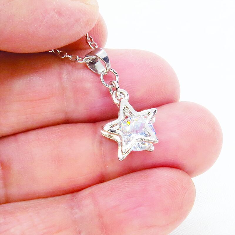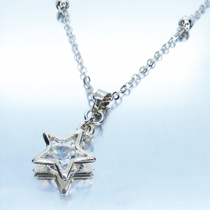 星のシルエットの中でジルコニアが光を多角的に反射し、胸元が動くたびに繊細な煌めきを振りまきます。