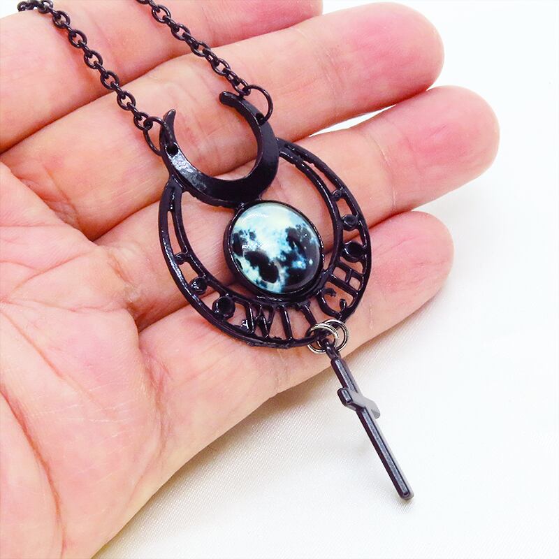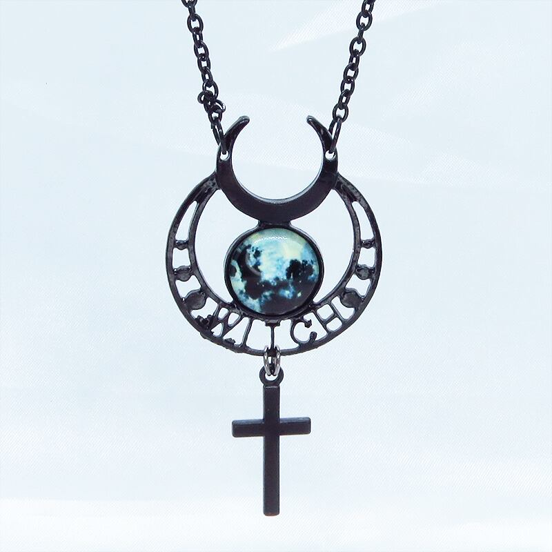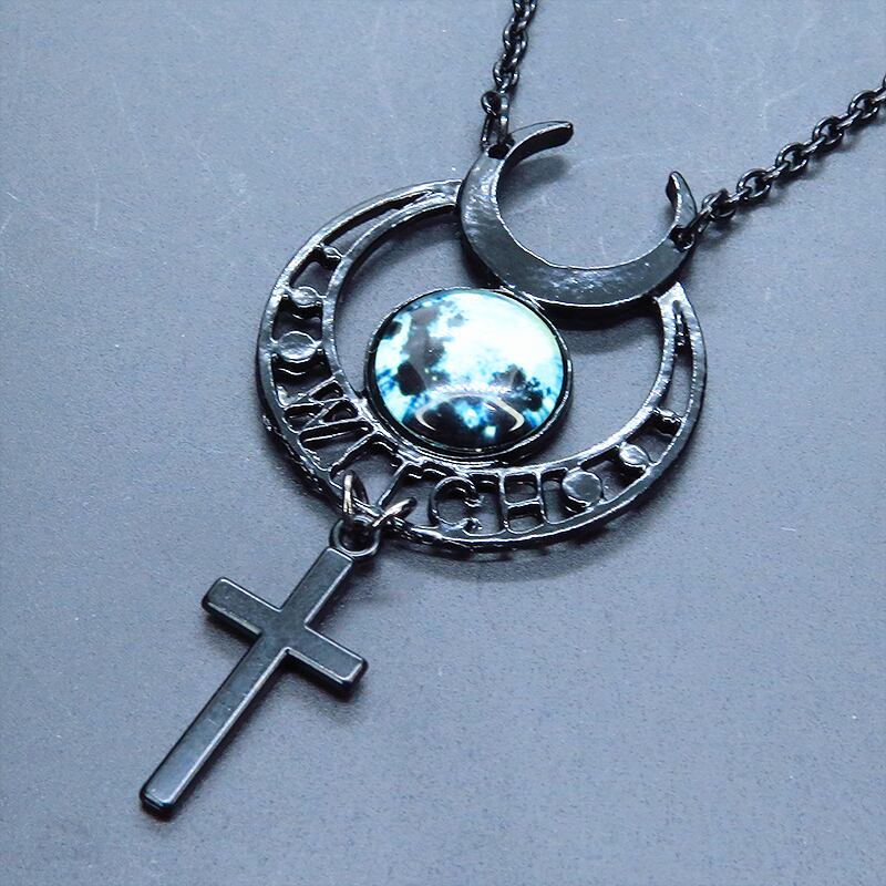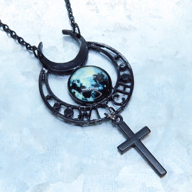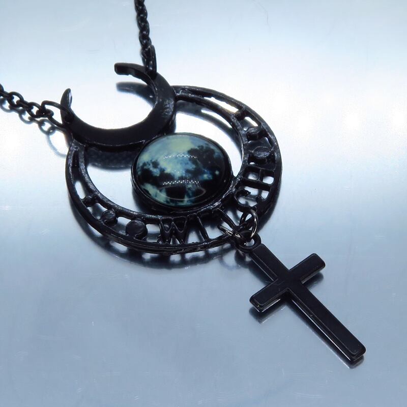 黒で統一されたゴシック調ムーンネックレスです