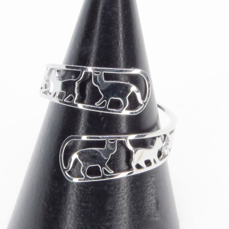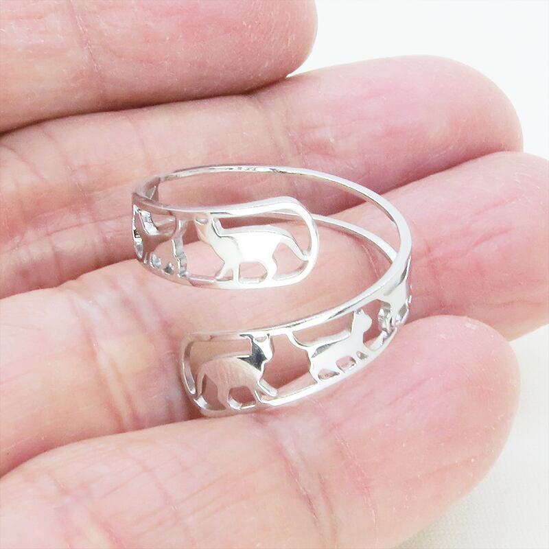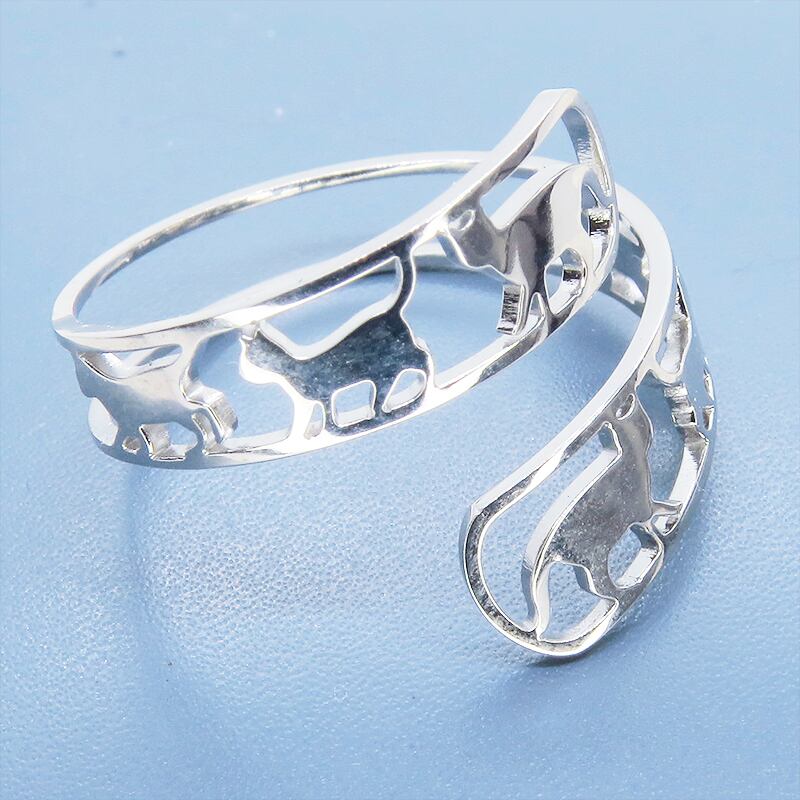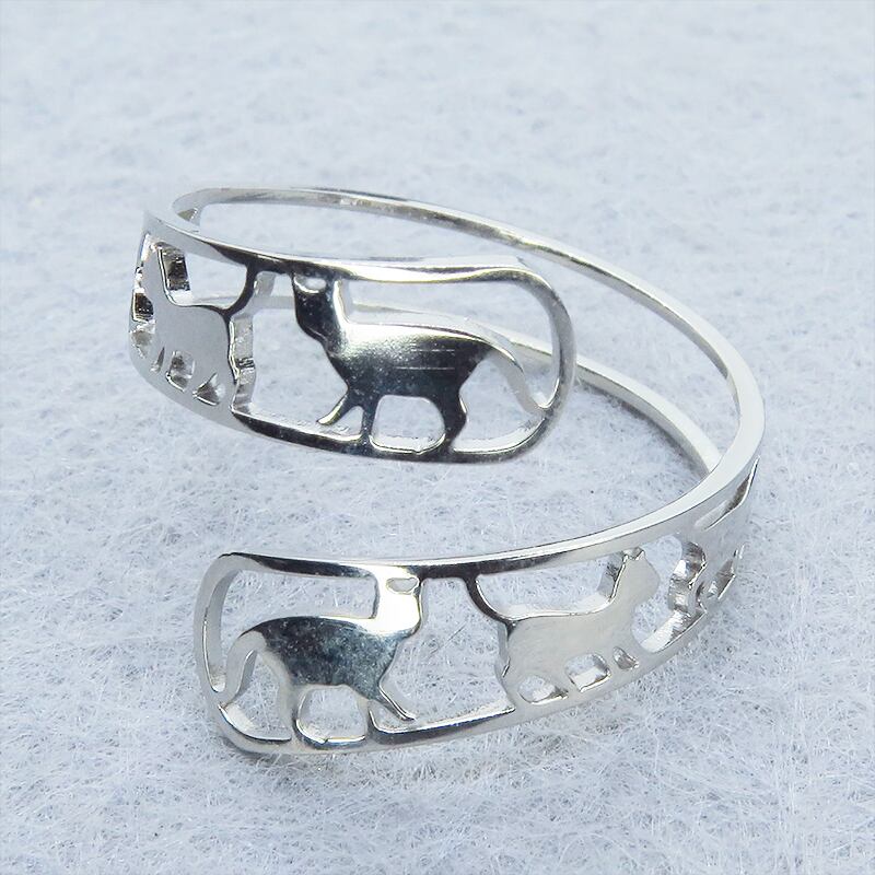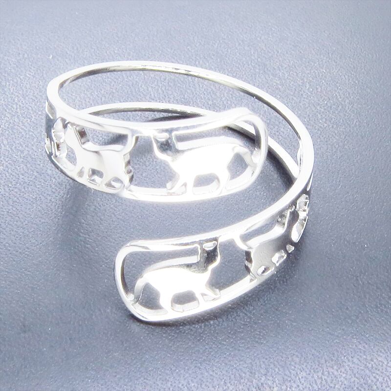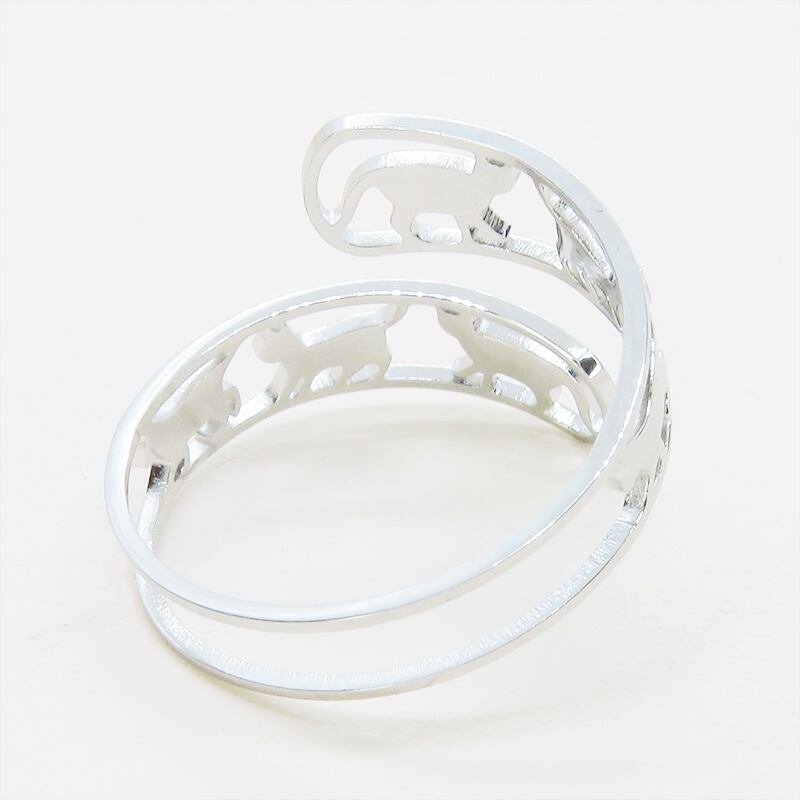 ステンレス製 シルバーカラー 歩く猫シルエットが連なる大人可愛いリング フリーサイズ