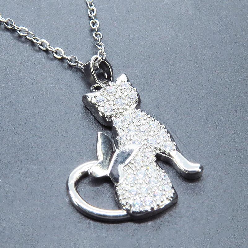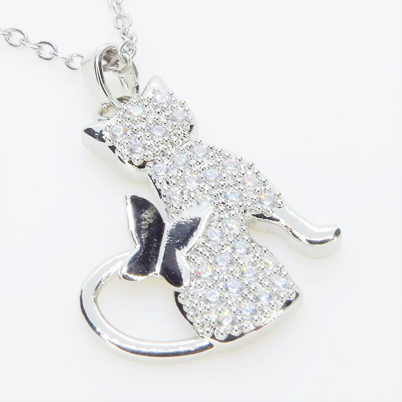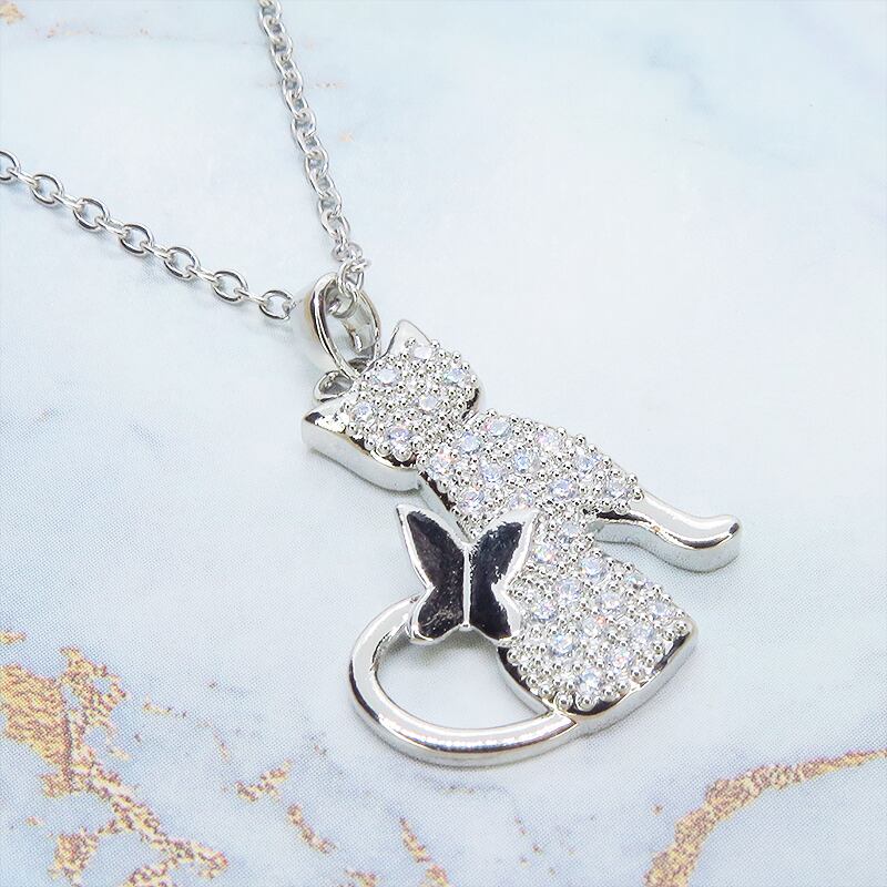 猫と蝶が戯れる一瞬を切り取ったようなドラマチックなモチーフは大人の女性のデコルテを上品かつ華やかに演出してくれます
