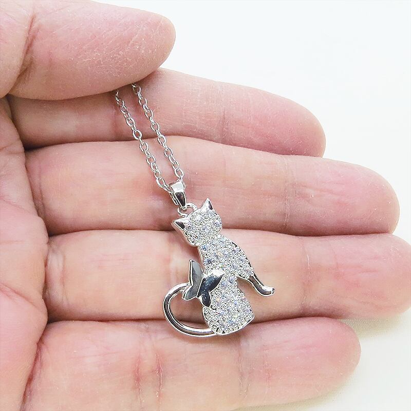 ビジューの圧倒的な煌めきと、猫の愛らしいシルエット、そして蝶の繊細なアクセント