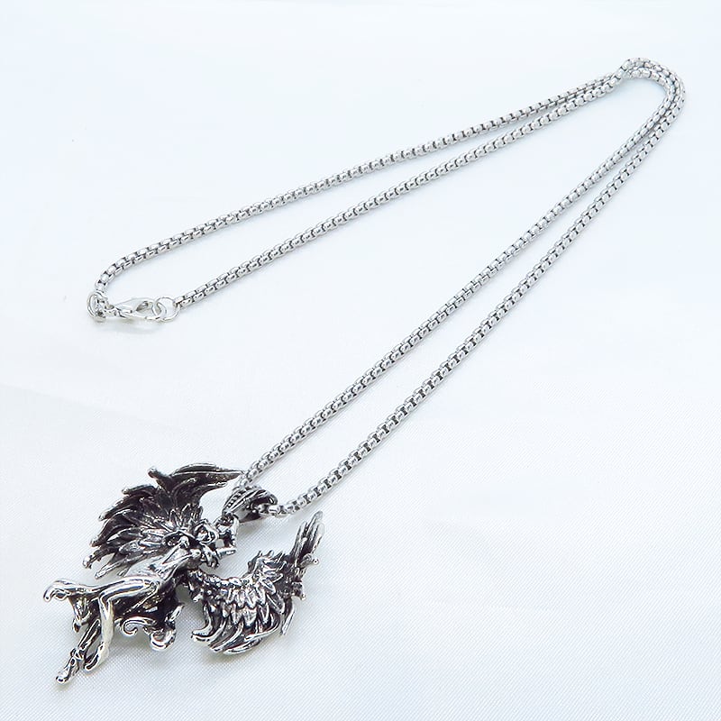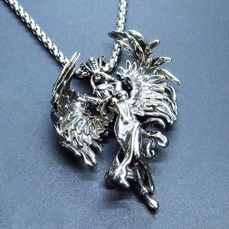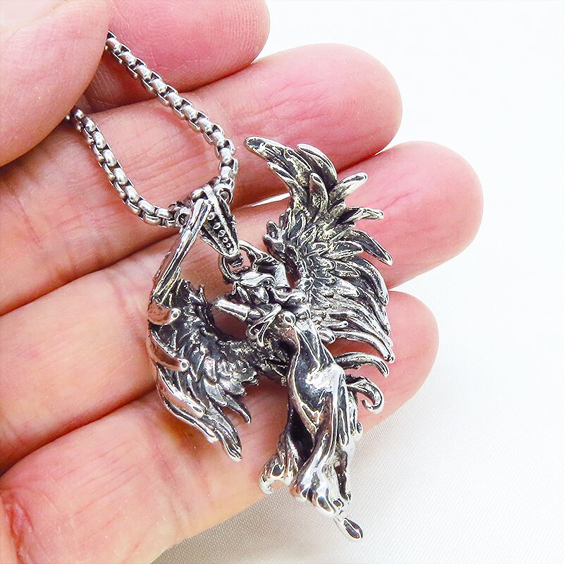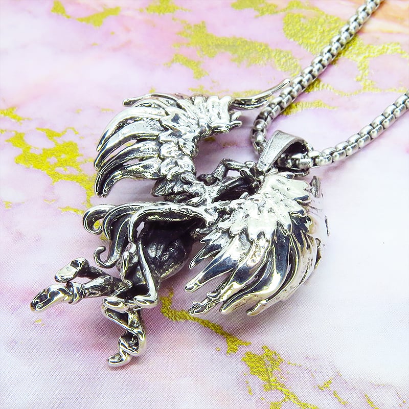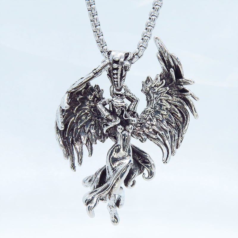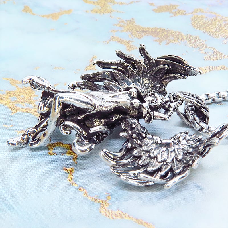シャープな輝きのシルバーカラーを纏い力強く翼を広げた天使をモチーフにしたペンダントです