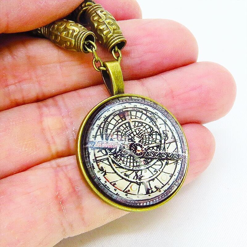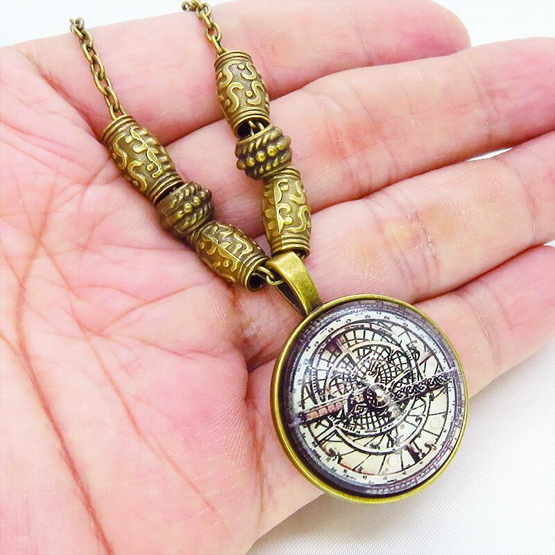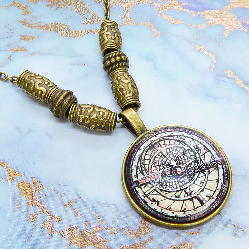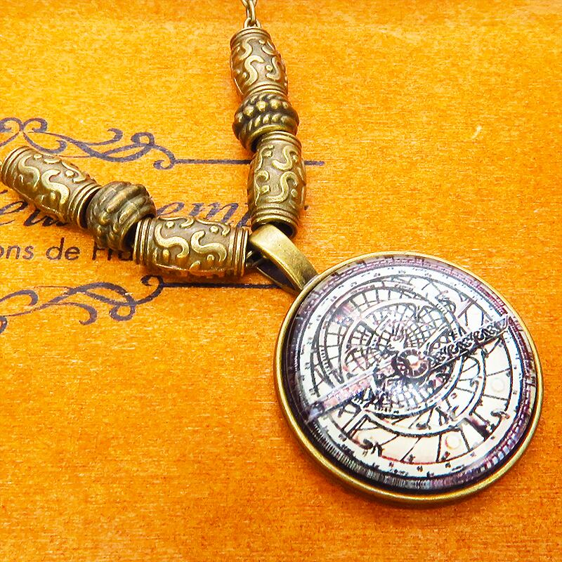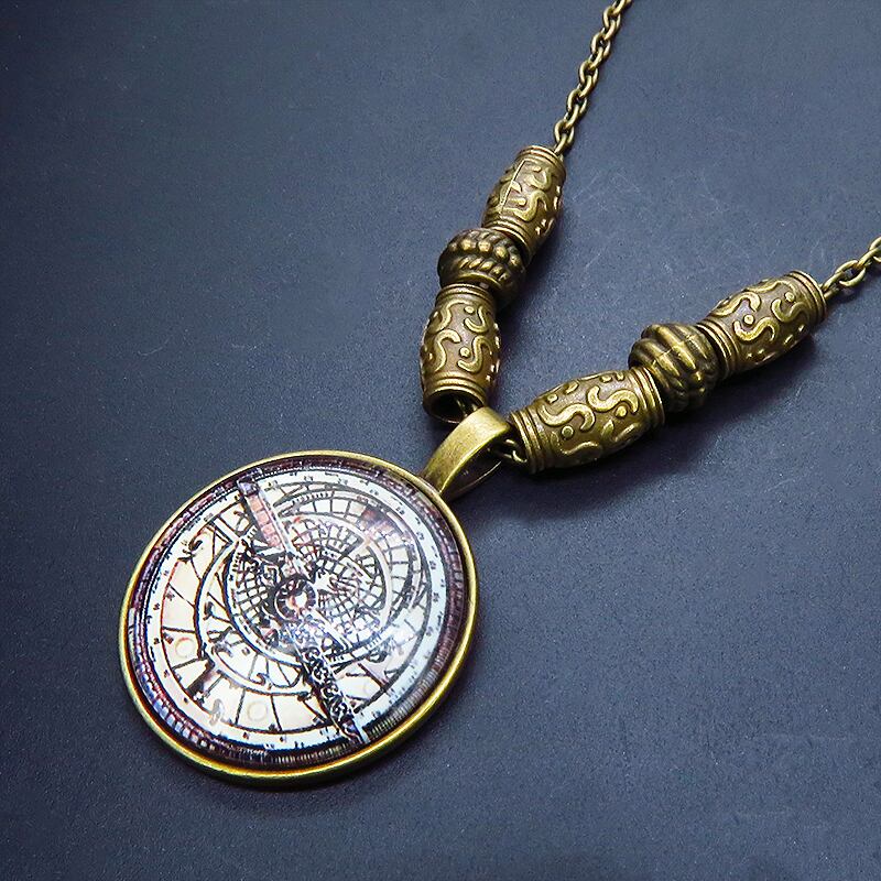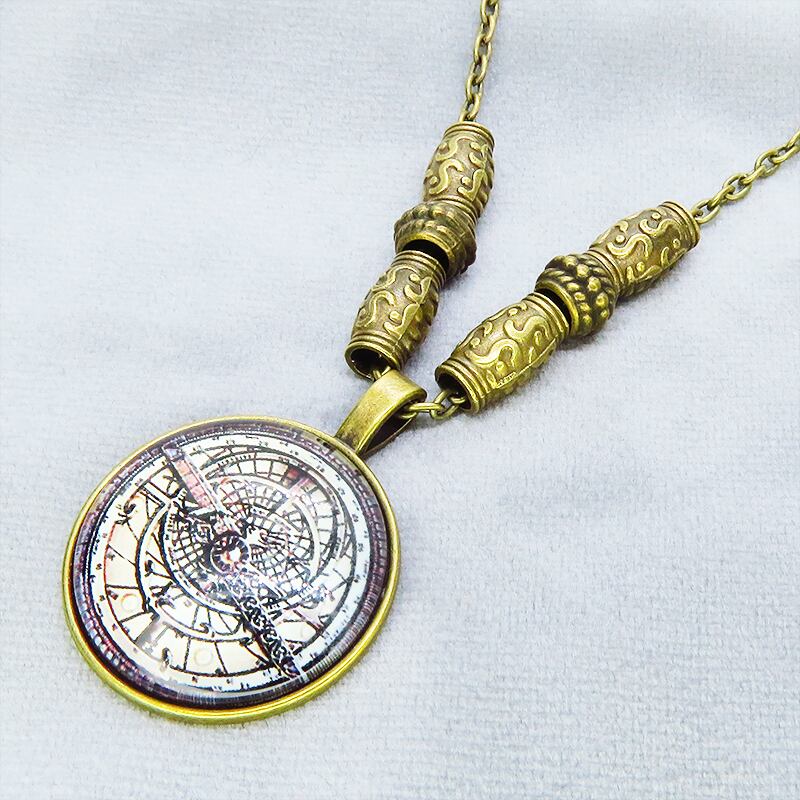 ペンダント部分に方位磁針・羅針盤のような幾何学的なイラストを用いたスチームパンク風ネックレスです