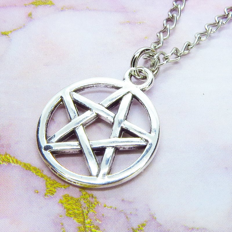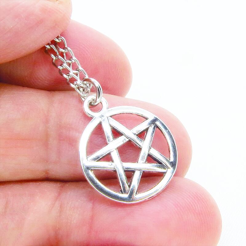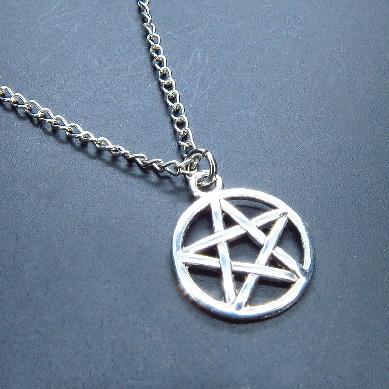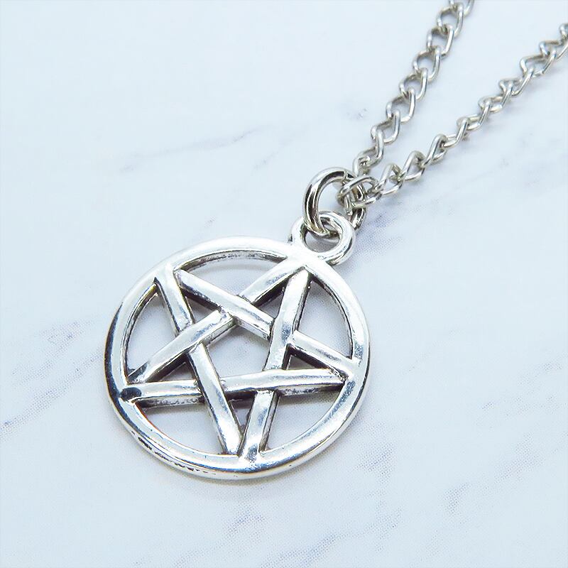 深みのあるアンティークシルバーカラーを纏い、古くから魔除けや守護の象徴として愛されてきたペンタグラム(五芒星)を主役に据えた一品です